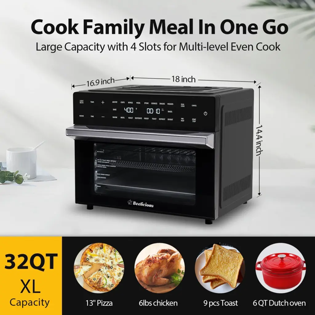 Tired of juggling multiple appliances that clutter your countertop? Meet the 32QT 19-in-1 Air Fryer Toaster Oven Combo—the all-in-one powerhouse designed to replace your air fryer, toaster, conventional oven, rotisserie, dehydrator, and more. Unleash your inner chef and discover a healthier, faster, and smarter way to cook for the whole family.