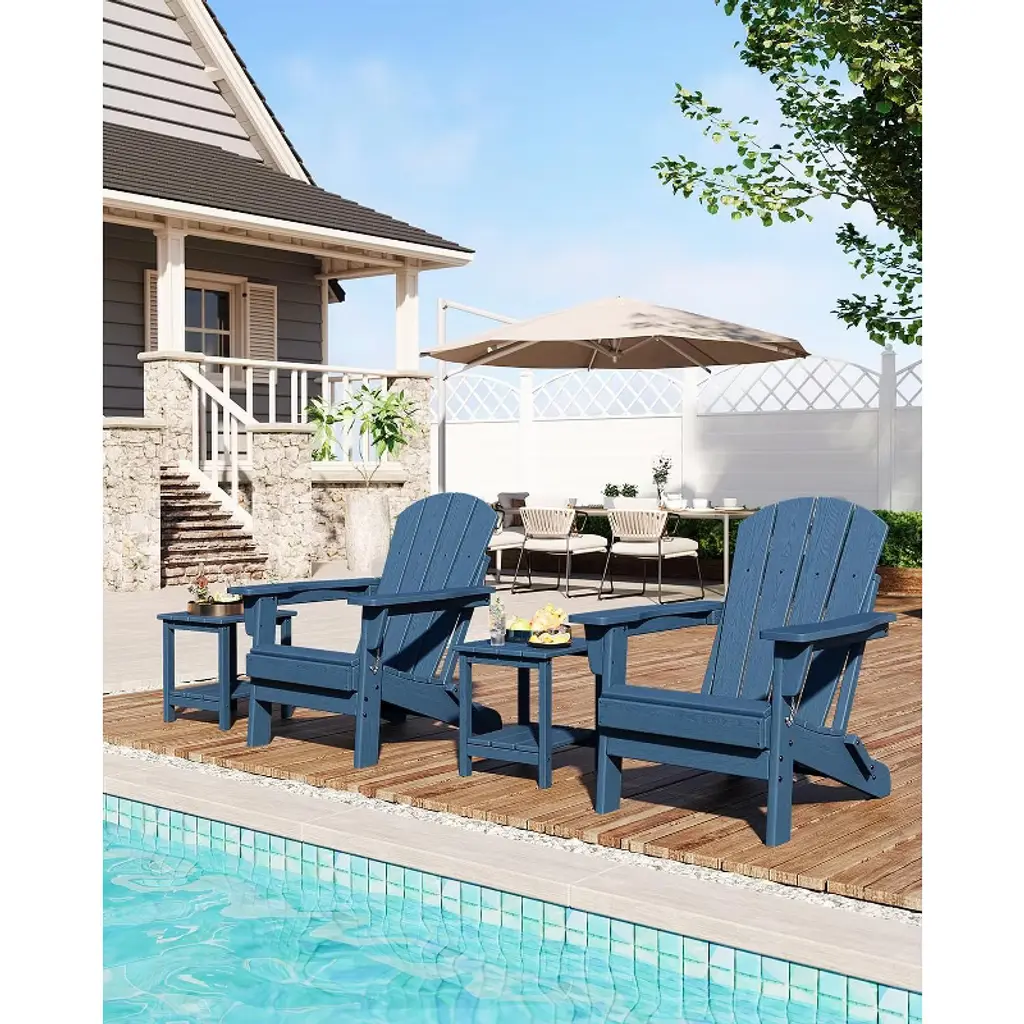 35' Adirondack Chair, Wooden Textured with Cup Holder, Heavy All-Weather HDPE Comfortable Set Poolside Backyard
