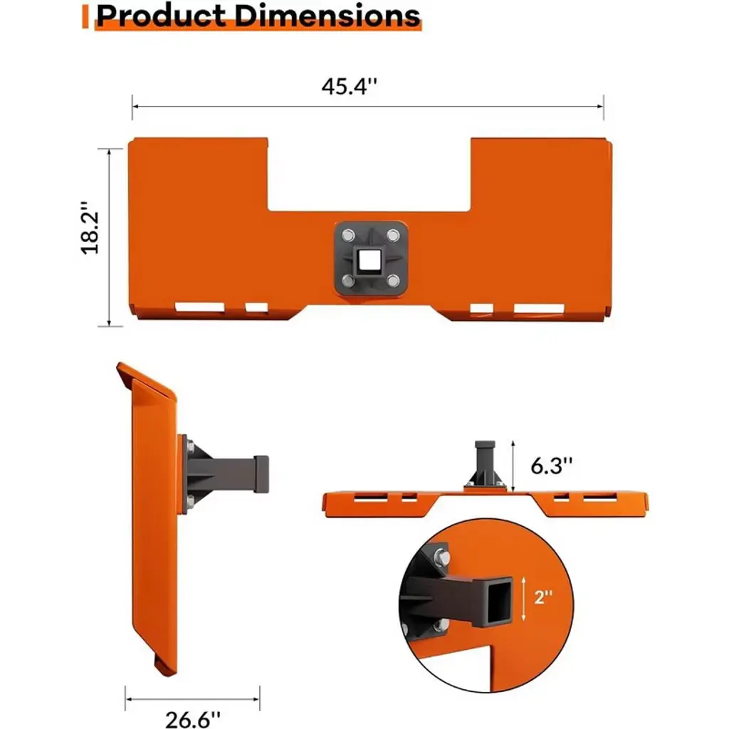 3/8" Skid Steer Mounting Plate With 2-inch Removable Trailer Hitch Receiver, Universal Quick-connect Plate For Skid Loaders & Tractors
