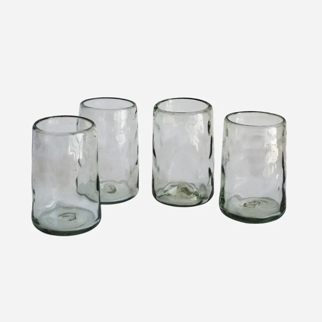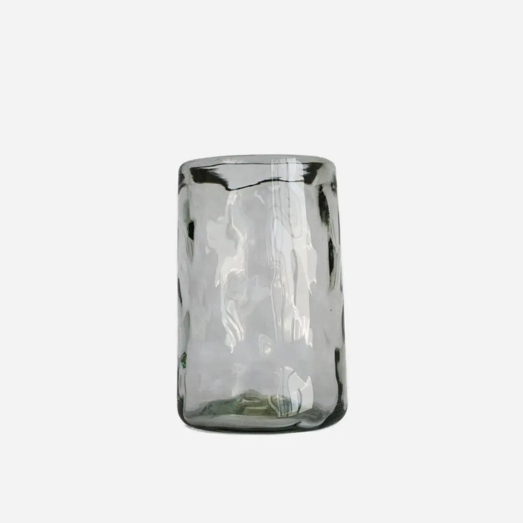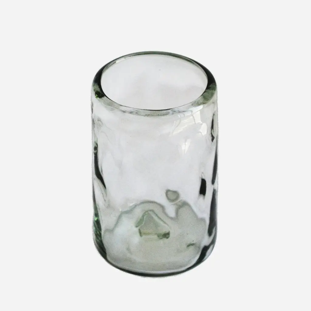 White Lights is a set of handblown transparent glasses with an organic shape inspired by the natural surface of the land.Nightlights of Mexico City collection of classic glasses inspired by the nightlife of Mexico’s cultural golden age in the 1950s. It was a time when the city life was cosmopolitan and the night was about dressing up and drinking cocktails in the club, watching the magnificent mambo dancers and musicians and then dancing a skeleton shake with the salsa and cumbia rhythms. This atmosphere was surrounded by a warm and low light and there on the table was our drink, shining with the sequin dresses in the night and the brass instruments and the laughs and the stars in the sky. Mexico city came alive at night.From the traditional workshops in Tonalá, Jalisco, we present this collection of handblown glasses made in 100% recycled glass. The glasses can present some size variations and bubbles from the process of production, we love these details that give individuality and texture to the pieces.SizeDiameter 8.5 cm, height 13cmCapacity 600 ml /20 OZAs an artisan made /handmade product sizes can change.