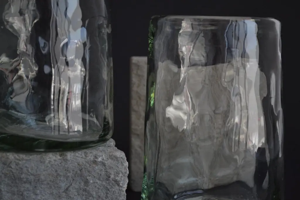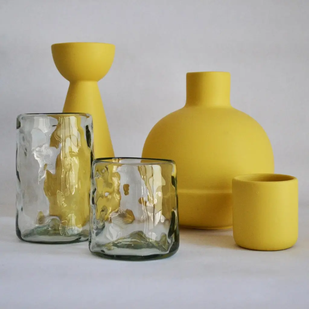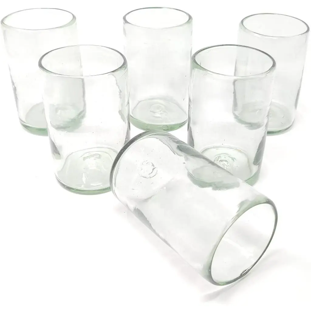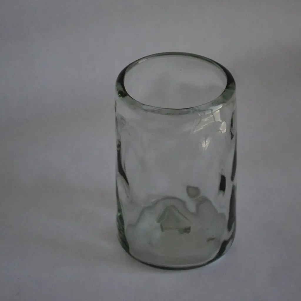 White Lights is a set of handblown transparent glasses with an organic shape inspired by the natural surface of the land.Nightlights of Mexico City collection of classic glasses inspired by the nightlife of Mexico’s cultural golden age in the 1950s. It was a time when the city life was cosmopolitan and the night was about dressing up and drinking cocktails in the club, watching the magnificent mambo dancers and musicians and then dancing a skeleton shake with the salsa and cumbia rhythms. This atmosphere was surrounded by a warm and low light and there on the table was our drink, shining with the sequin dresses in the night and the brass instruments and the laughs and the stars in the sky. Mexico city came alive at night.From the traditional workshops in Tonalá, Jalisco, we present this collection of handblown glasses made in 100% recycled glass. The glasses can present some size variations and bubbles from the process of production, we love these details that give individuality and texture to the pieces.SizeDiameter 8.5 cm, height 13cmCapacity 600 ml /20 OZAs an artisan made /handmade product sizes can change.