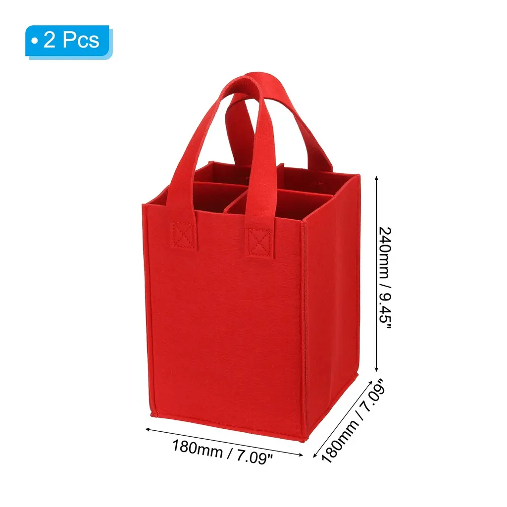 It is used to store the wine bottle and provides a secure and protective solution for transporting. Suitable for wine enthusiasts, travelers, or anyone in need of a reliable and stylish storage container. It is also a gift for family and friends at outdoor picnics, parties, weddings, birthdays, holidays, anniversary, or any special occasion.SpecificationColor: GreyMaterial: FeltSize: 240 x 180 x 180mm / 9.4 x 7.1 x 7.1 inch(L*W*H)Packing List: 2 x Wine Carrier ToteAdvantageThe thick and durable neoprene material acts as a cushion, preventing breakage. With a spacious interior that can accommodate standard-sized wine bottles. Its lightweight and compact design makes it easy to carry. The edge has a hemming sewing process, which is strong and durable. It is foldable when not in use to save space.InstructionPut the wine bottle vertically into the wine storage bag and pick it up with the handle. The divider design ensures you can carry more bottles without making noise. The soft and comfortable handles provide a secure and portable grip.NOTE: As well as holding a wine bottle, it can also store books, craft and knitting supplies, or other tools.