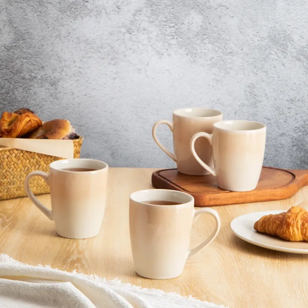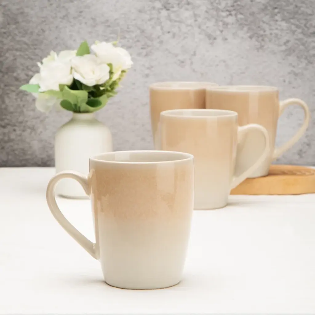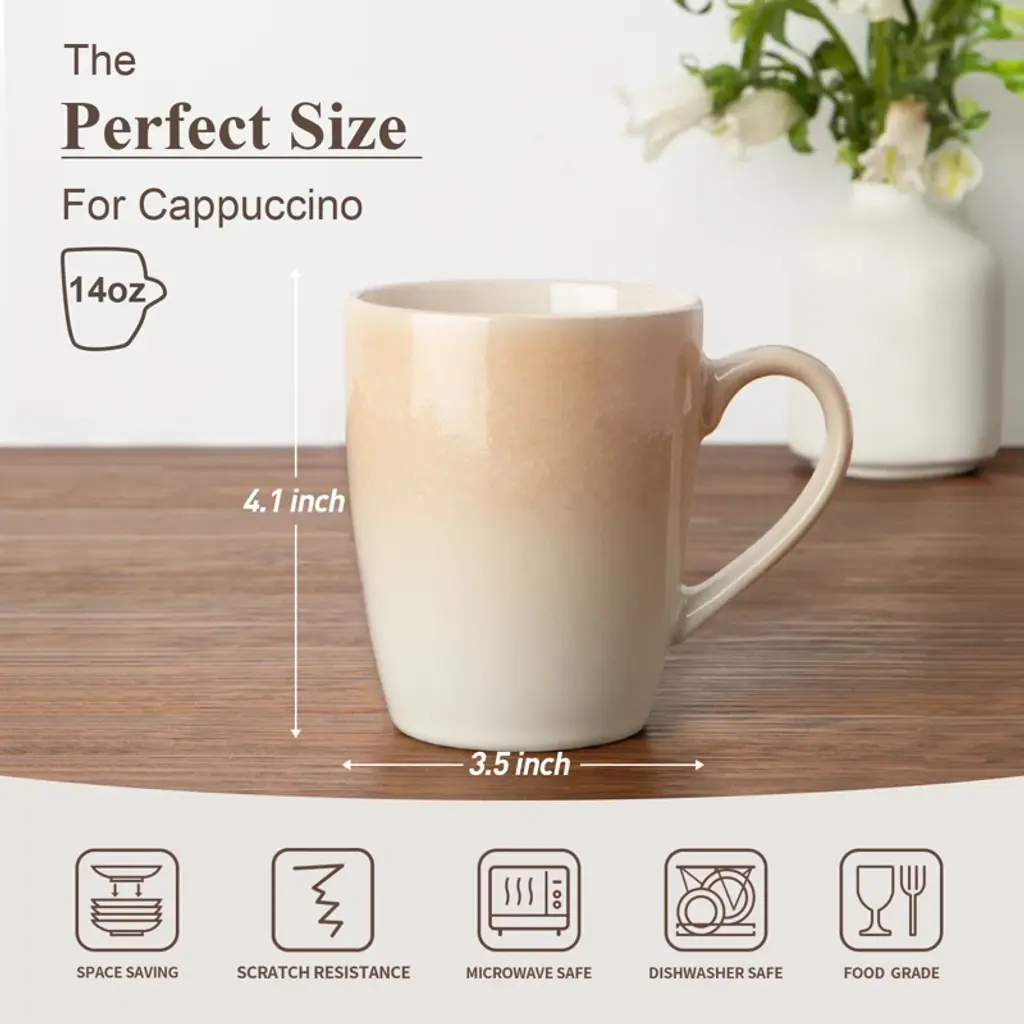 This coffee mug set with nature-themed is both romantic and fresh,and it looks like an exquisite piece of art when placed on the table. This coffee cup set includes 4 coffee mugs,meeting the needs of 4 people. It features a handcrafted gradient color design, using reactive glaze made from natural materials,with color variations that make each bowl a unique piece. It is 100% safe for microwave and dishwasher use,convenient for heating,and easy to clean. In the hustle and bustle of life,let the fresh and elegant coffee mugs bring you a touch of tranquility and comfort from nature.