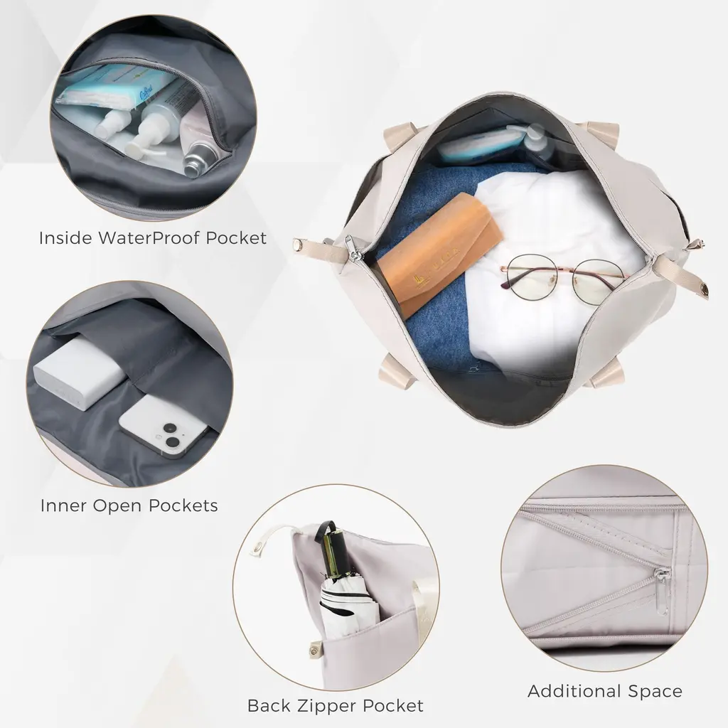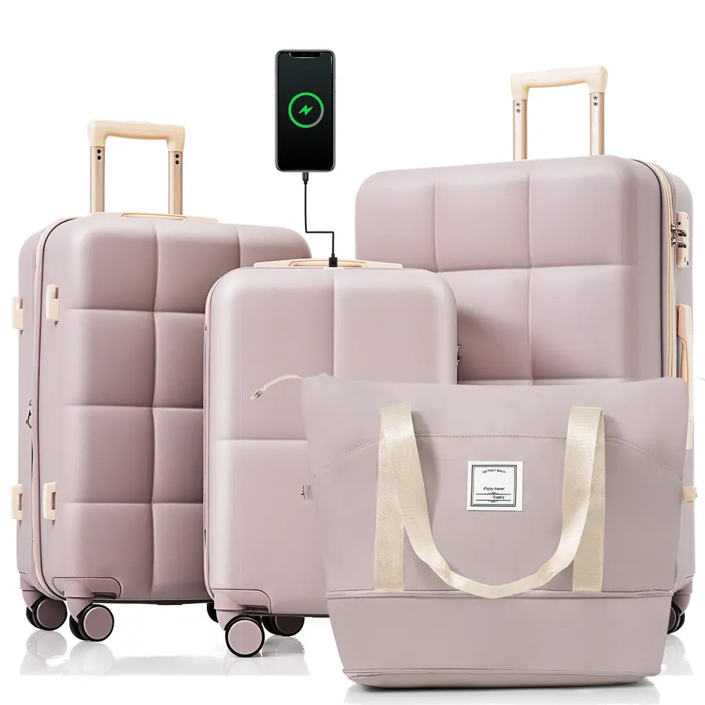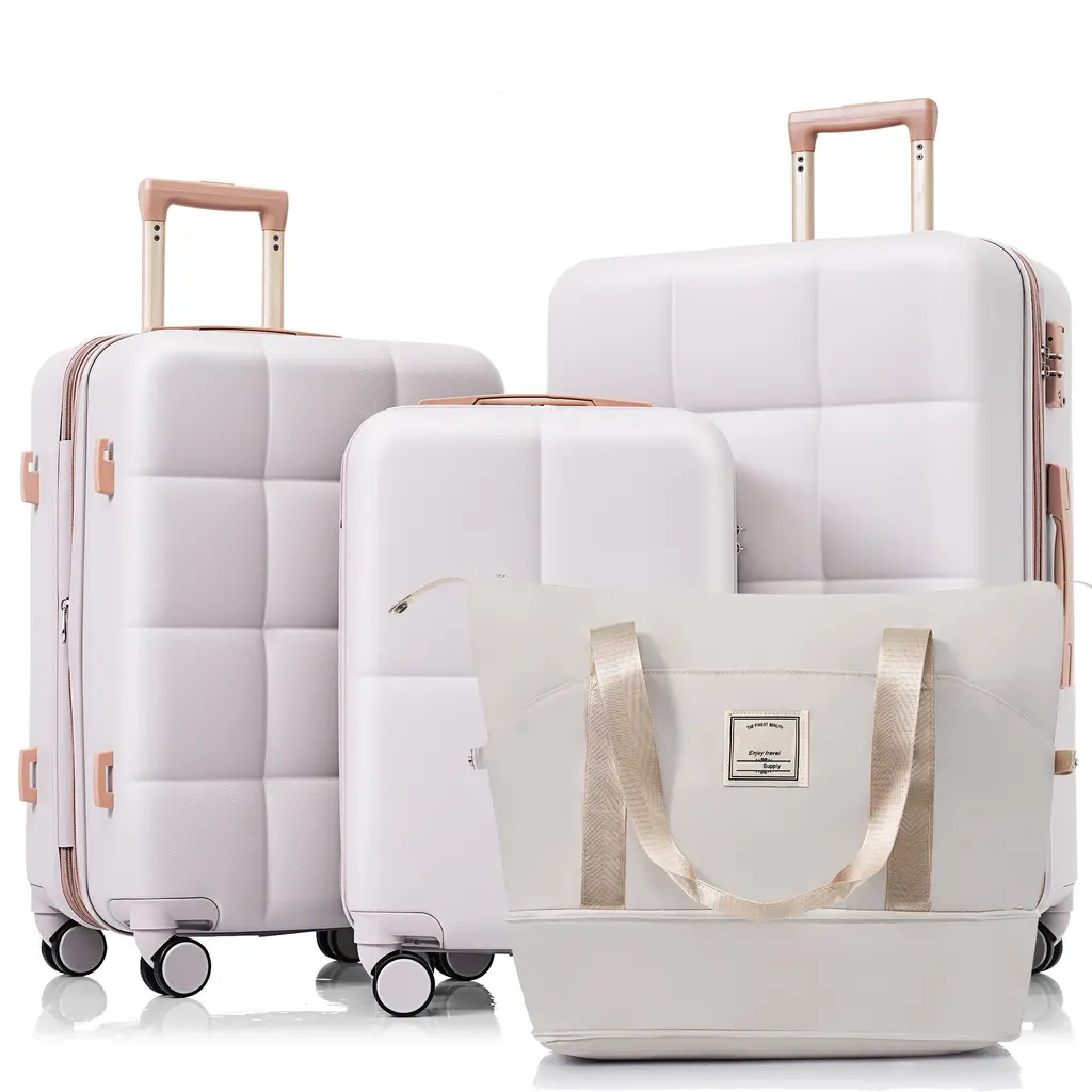 4 Piece Expandable Luggage Sets, Abs Durable Suitcase With Travel Bag And Cup Holder, Hard Shell Spinner Wheels Luggage - Light Grey