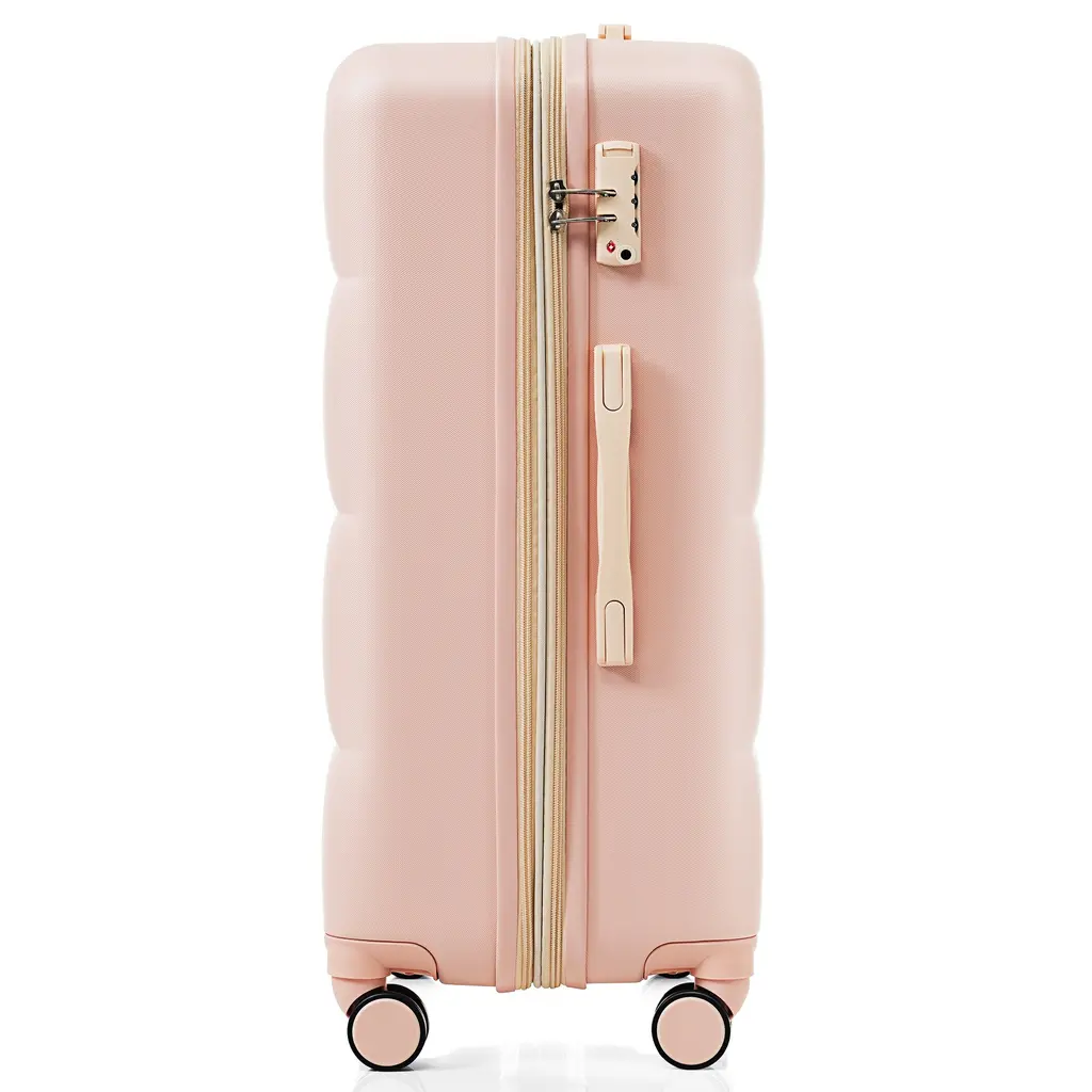 4 Piece Expandable Luggage Sets, Abs Durable Suitcase With Travel Bag And Cup Holder, Hard Shell Spinner Wheels Luggage - Pink