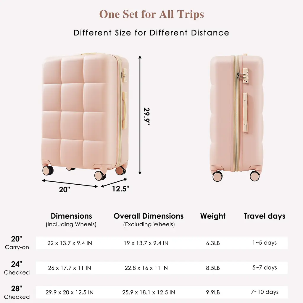 Elevate your travel experience with this premium 3-piece luggage set made from durable ABS material, featuring a scratch-resistant finish, smooth 360° spinner wheels, and an ergonomic retractable handle. Includes a carry-on with USB charging port, expandable checked suitcases, side hooks, integrated cup holder, and a convenient water-repellent weekender bag.Features:Quick Glance Points: