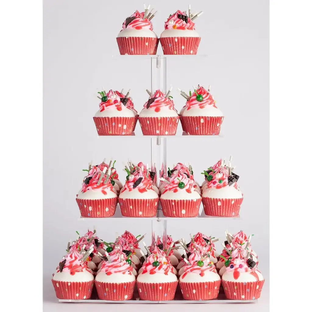 4 Tier Acrylic Cupcake Stand, Acrylic Cupcake Tower Display Cady Bar Party Dcor A Display For Pastry,rotundity(4.7" Between 2 Layers)