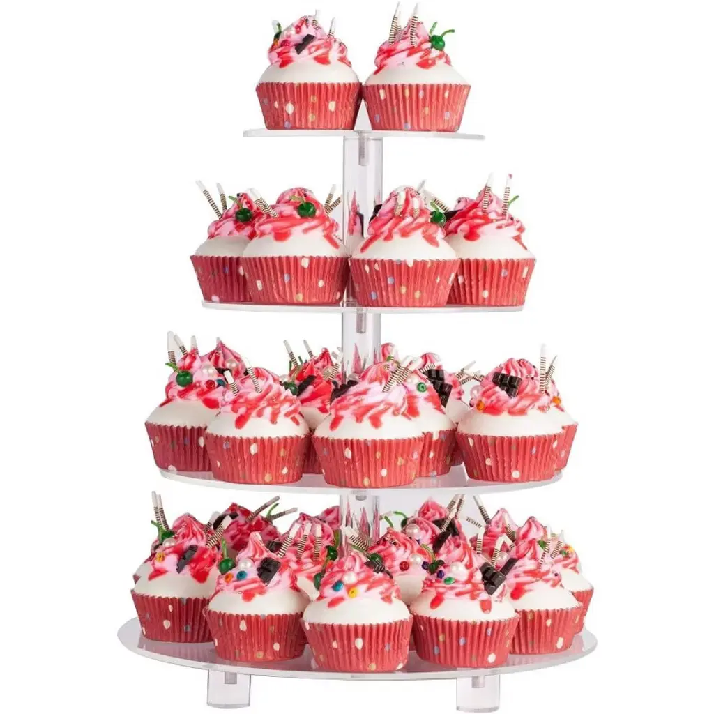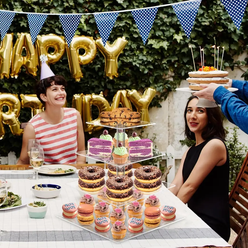 4-tier Acrylic Cupcake Stand, Acrylic Cupcake Tower Display Cady Bar Party Dcor A Display For Pastry,square(4.7" Between 2 Layers)