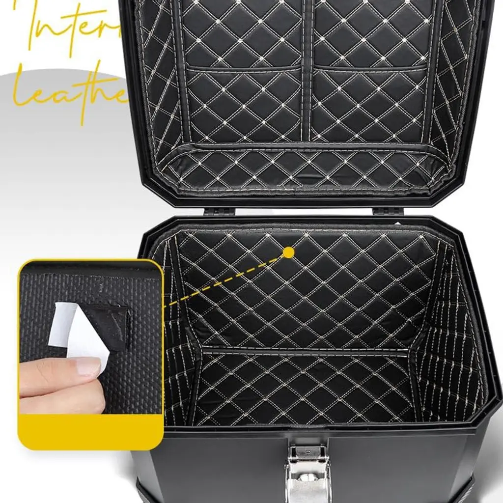 "Motorcycle Top Case ¨C 45L Aluminum Lockable Storage Box with Baseplate (TruAIR Brand, Black)"Product Details & Specifications:Premium Aluminum ConstructionMade from high-quality aluminum alloy for durability and lightweight performance (4,899g)Black finish with integrated reflective strips for enhanced visibilitySpacious & Organized Storage45L capacity ¨C fits full-face helmets, riding gear, and essentialsRemovable shock-absorbing liner for easy cleaningWeatherproof & SecureWaterproof and dustproof design with sealed seamsLockable system with baseplate for theft preventionSafety & ProtectionAnti-drop corner guards prevent damageReflective strips improve nighttime safetyEasy Installation & UseTool-free mounting system ¨C no drilling requiredUniversal fit for most motorcycles and scootersBrand: TruAIRMaterial: AluminumColor: BlackWeight: 4,899 gSpecial Features: Waterproof, Lockable, Reflective Strips