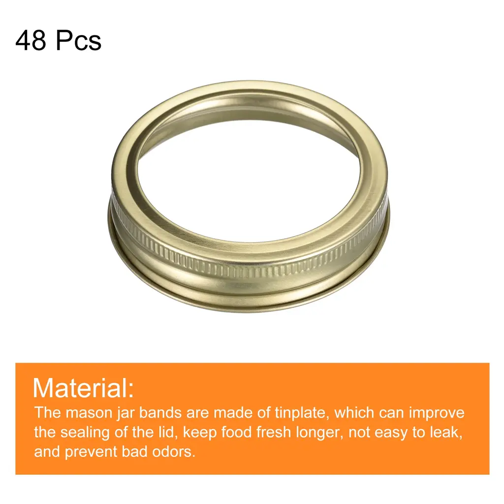 48pcs Canning Jar Rings Tinplate Replacement Bands Regular Mouth - Silver - 86mm