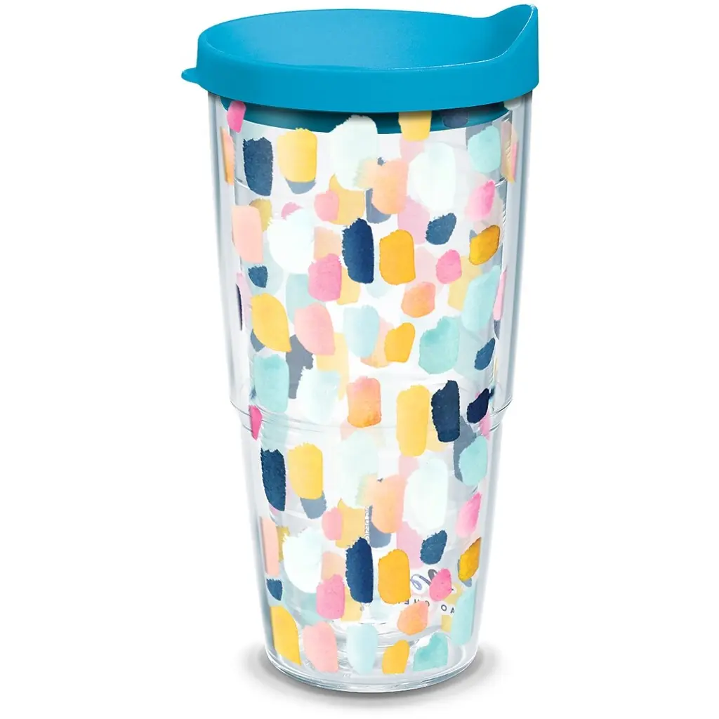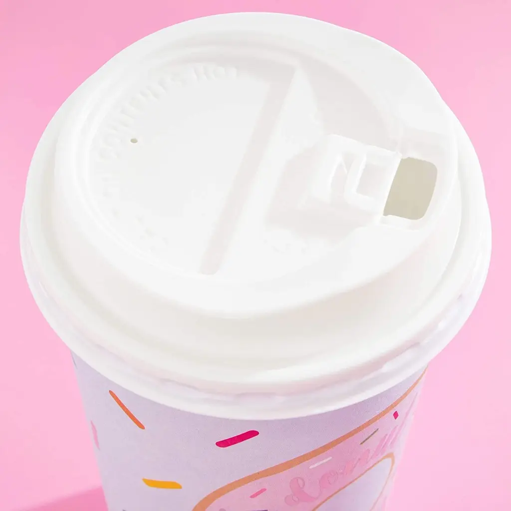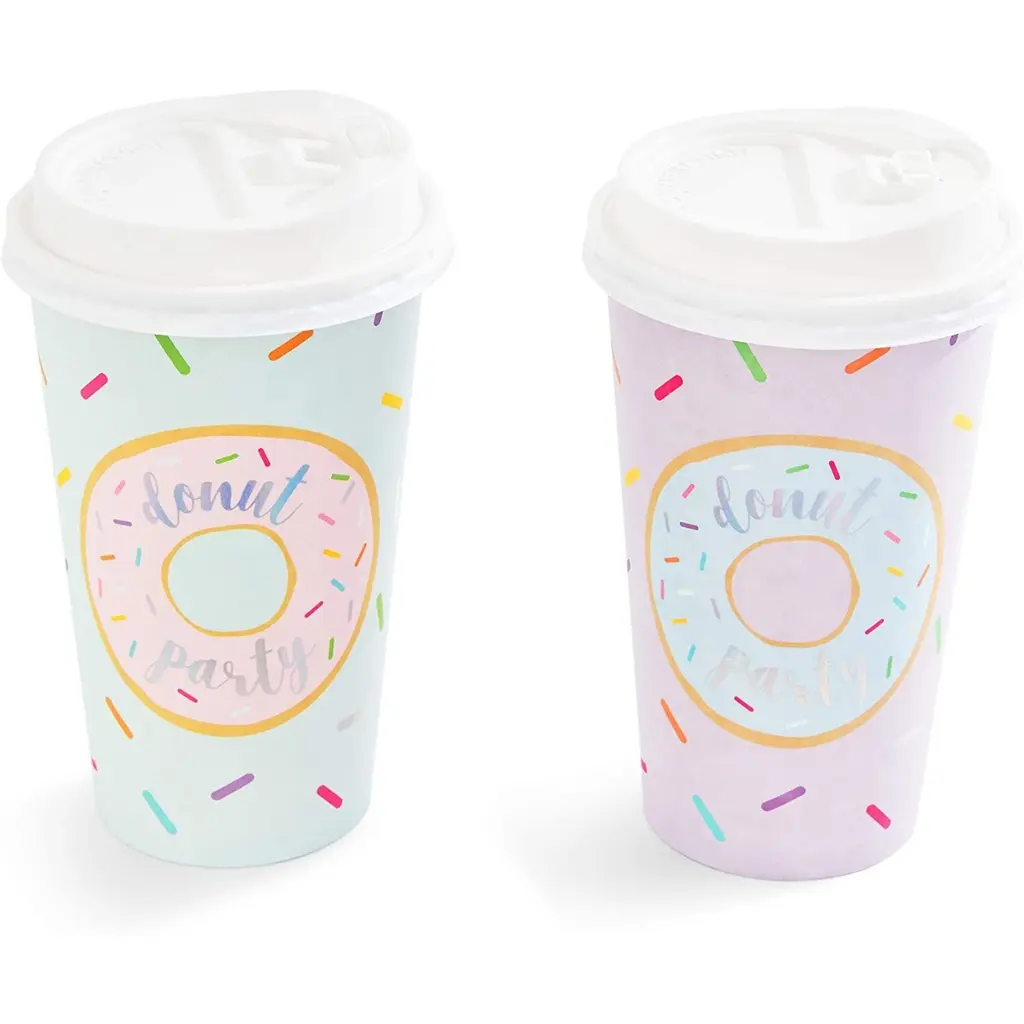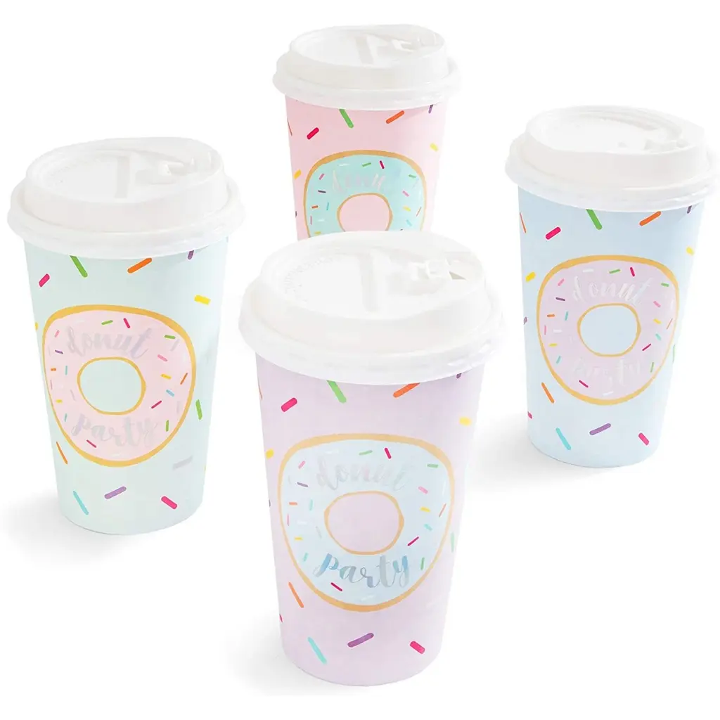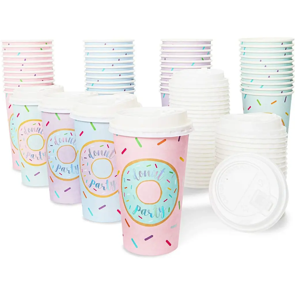 48x Pastel Insulated Disposable Paper Coffee Cups With Lids For Donut Party 16oz - Multi