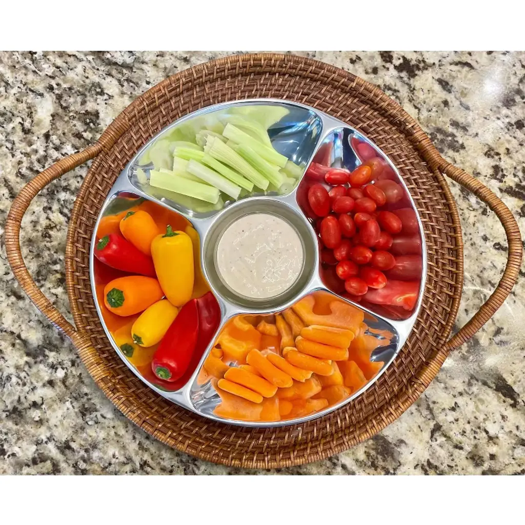Multifunctional 5-Compartment Snack/Salsa Platter: A Game-Changer for Your Dining Experience Are you constantly on the lookout for a dinner plate that goes beyond the ordinary? Look no further! Our 5 - compartment snack/salsa platter is designed to meet all your culinary and entertaining needs, making every meal and gathering more convenient, enjoyable, and stylish. Smart Compartment Design The 5 - compartment layout is a game - changer. It provides the perfect space to separate different types of snacks, appetizers, or components of a meal. Use one section for salsa, another for chips, one for cheese, and the remaining two for dips or fruits. This prevents flavors from mixing, ensuring that each item retains its unique taste. For dinner, you can divide your plate into healthy portions of protein, vegetables, grains, and sides, promoting a balanced diet. Versatile Usage This platter is not just for snacks. It's equally suitable for family dinners, picnics, parties, and even outdoor barbecues. At home, it simplifies mealtime for kids, making it easier for them to eat a variety of foods. During parties, it serves as an excellent serving dish for guests to enjoy a diverse selection of bites. High - Quality Build Made from durable materials, our platter is built to last. It can withstand the rigors of daily use, resist scratches, and won't warp or crack easily. The smooth surface is easy to clean, whether you hand - wash it or toss it in the dishwasher. Stylish and Functional The design of the platter combines style with functionality. It features a sleek, modern look that complements any table setting, from casual to formal. Its compact size allows for easy storage in your kitchen cabinets, taking up minimal space. Multisensory Appeal Our 5 - compartment snack/salsa platter doesn't just satisfy your taste buds; it also engages your visual senses. The organized presentation of food on the platter makes meals more appealing, enhancing the overall dining experience. Whether you're a busy parent, a party host, or someone who appreciates practical and stylish kitchenware, our 5 - compartment snack/salsa platter is a must - have addition to your collection. Order yours today and revolutionize the way you serve and enjoy food!
