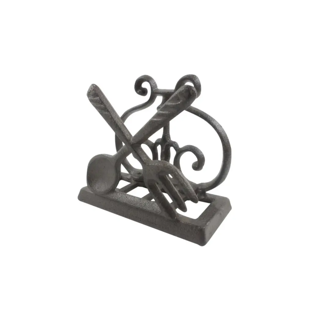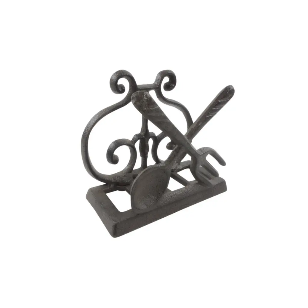 5" Grey Cast Iron Fork And Spoon Kitchen Functional And Decorative Napkin Holder - Grey