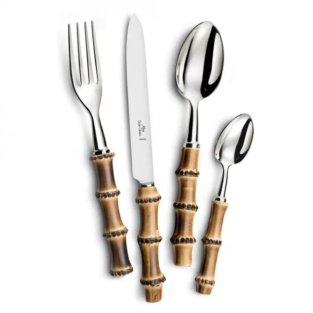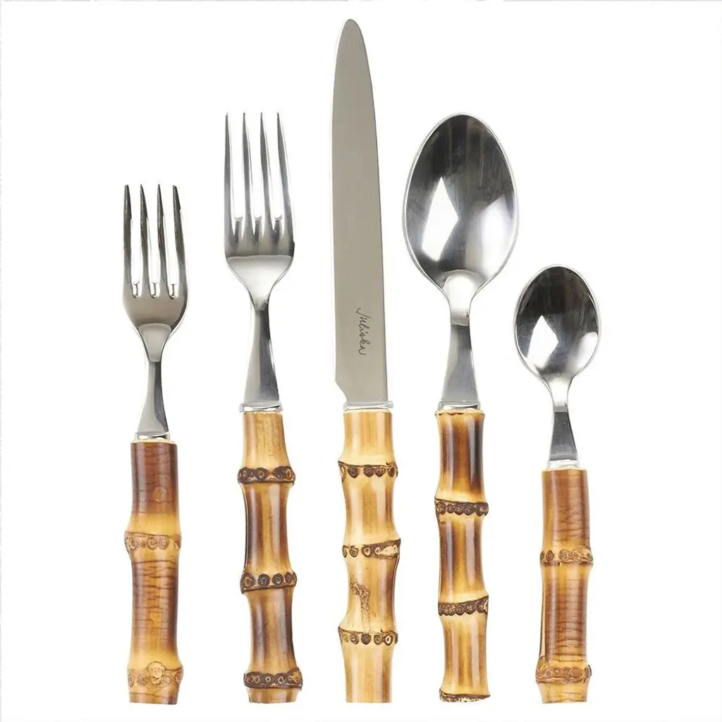 Perfect for everyday use and special occasions alike, each piece in this flatware set is crafted of 18/10 stainless steel with a natural bamboo handle.