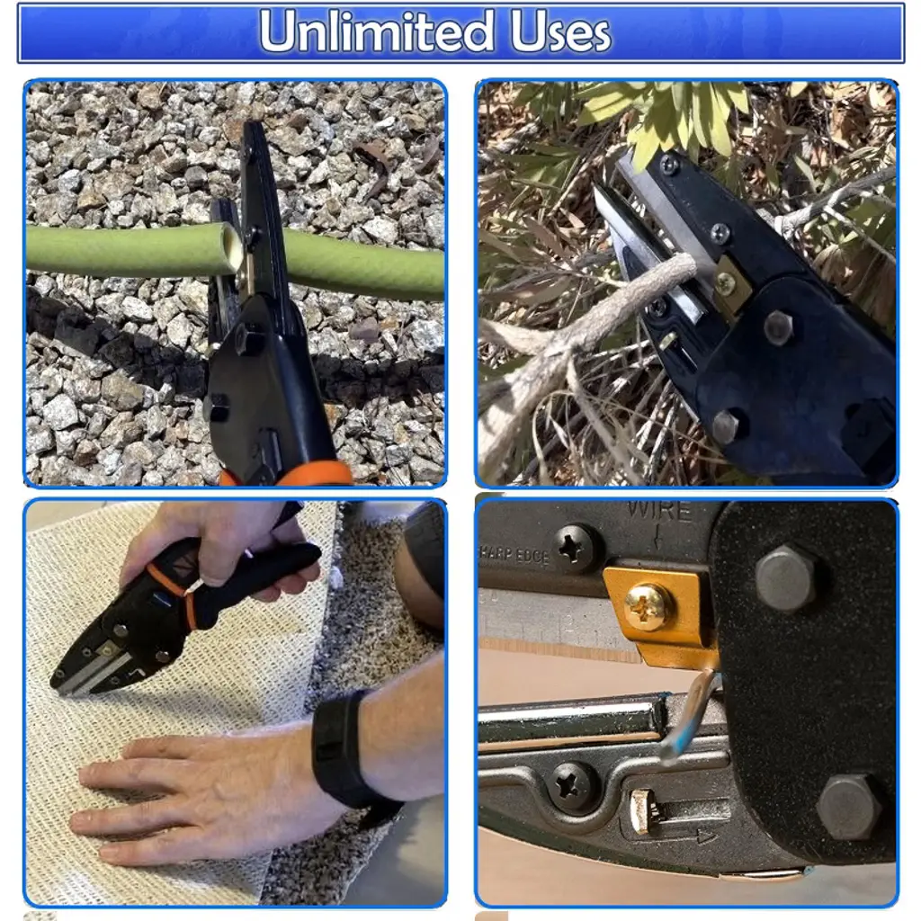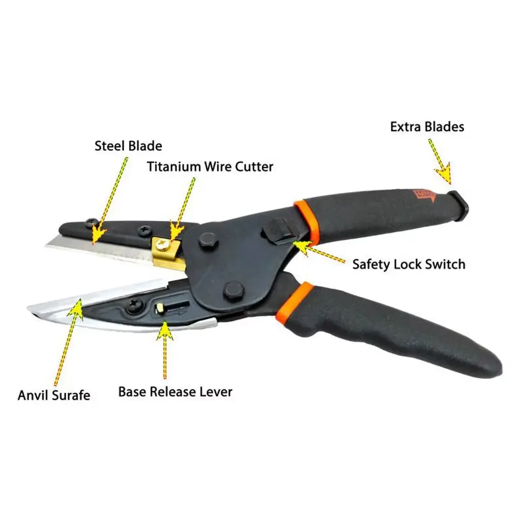 Versatile 3-in-1 Multi-Functional Utility Cutter Tool for Every TaskMeet the essential multi-tool that simplifies your projects - the 3 in 1 Power Cutting Multi Tool by 5 Star Super Deals perfect for home use to craftsman. Crafted with high-quality carbon steel blades, including replacement blades for longevity, and featuring a titanium-coated wire cutter, this compact utility tool is your go-to for cutting, gripping, wire stripping, and more. Whether you're at home, in the garden, or on a job site, its ergonomic design with non-slip rubber grips ensures comfort and precision in every utility cut. The tool's dimensions make it both portable and easy to handle for a variety of tasks, from wire cutting to utility scissors tasks.Safety and Durability Combined with Wire Cutter FunctionalitySafety is paramount with our multi-cut tool, which includes a reliable safety lock mechanism to keep the utility tool securely closed when not in use. Durability is assured, thanks to the carbon steel construction that stands up to rigorous use without losing its edge. The retractable anvil and base release lever for easy blade changes highlight the tool's practicality, ensuring it remains an indispensable part of your toolkit, much like those utility scissors you always rely on.Designed for the Professional and DIY Enthusiast with Wire Cutting NeedsWhether you're trimming wires for an electrical project with a wire cutter or cutting materials for a DIY endeavor, this multi-cut tool is engineered to deliver. Its heavy-duty capabilities allow it to cut through plastic, rubber, metal, and wood with ease, making it a versatile choice for a wide range of applications. For professionals and hobbyists alike, this tool provides the utility and ease of use needed for efficient and precise work, becoming a must-have in your set of utility scissors and cutters.