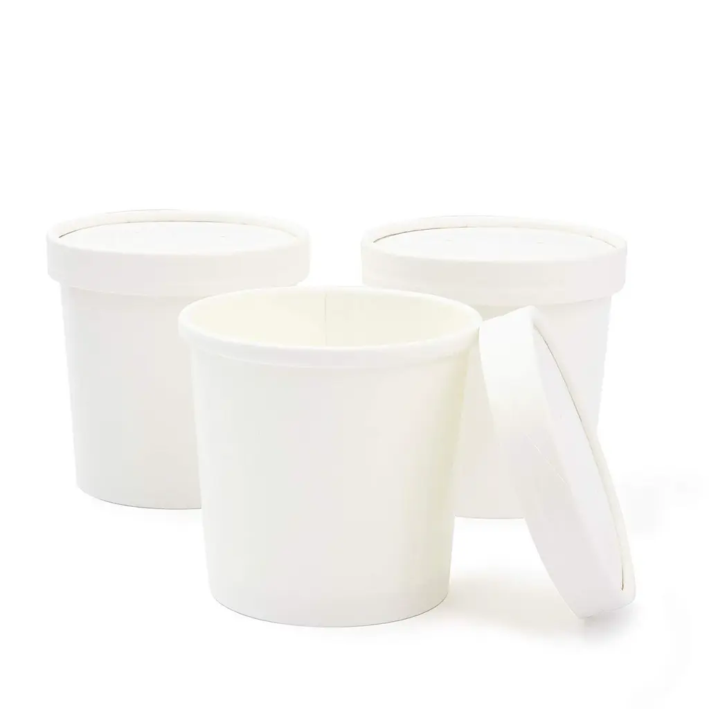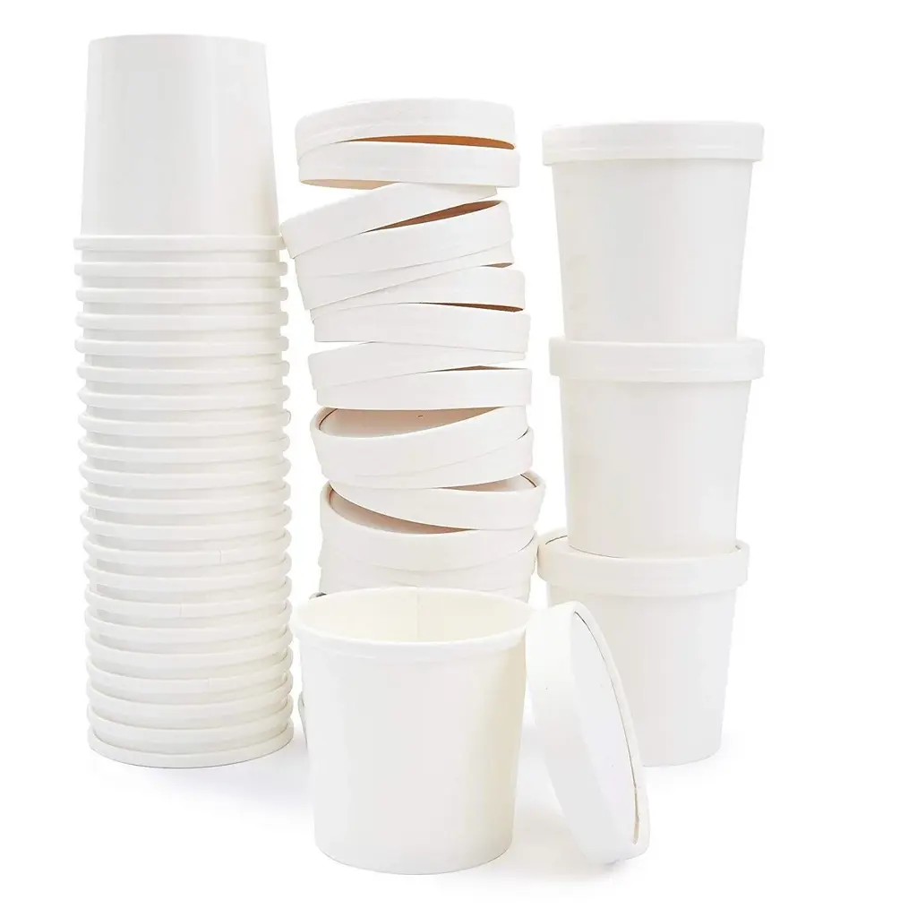 50 Pack 12oz Paper Ice Cream Dessert Soup Food Storage Meal Prep Cups With Lids - White - White