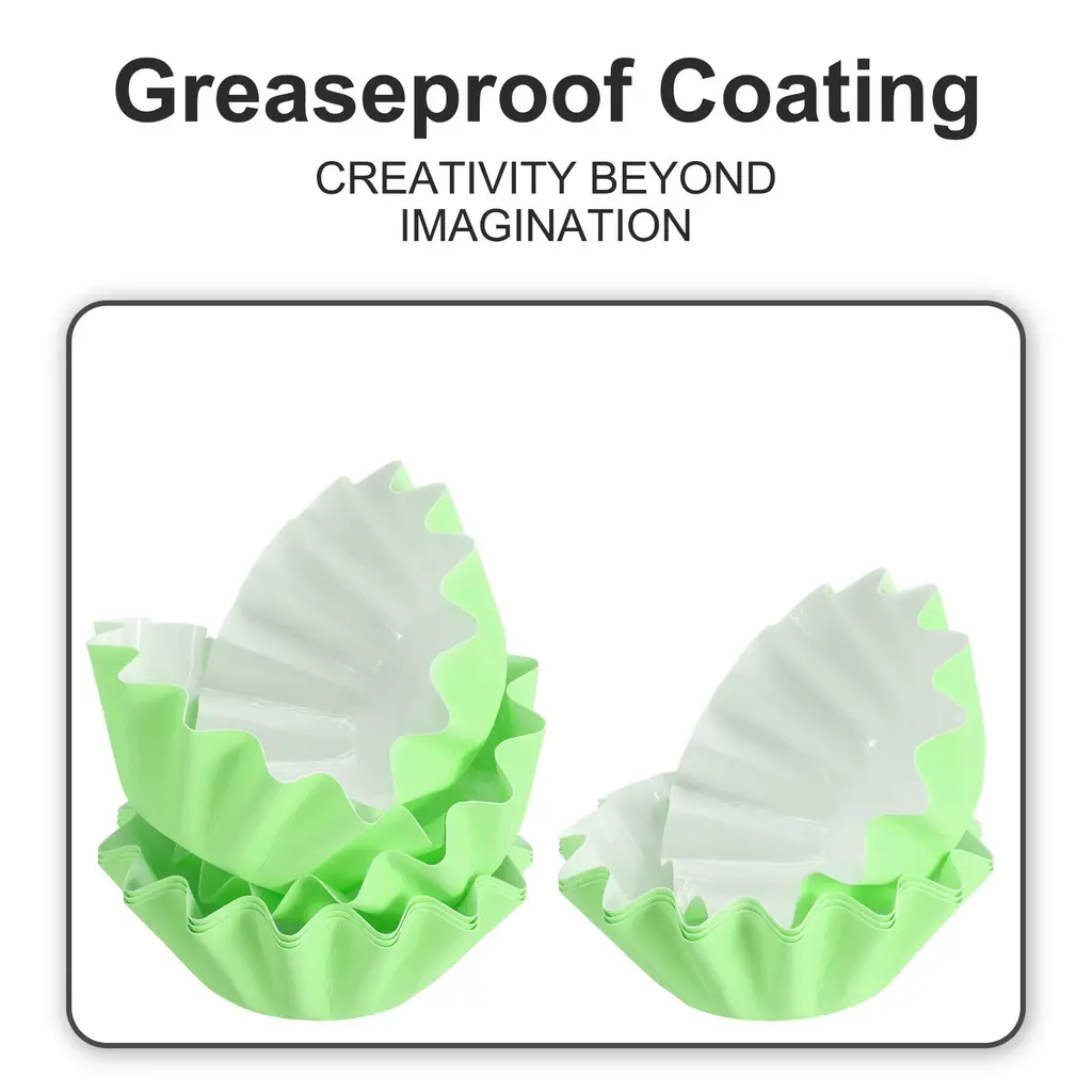 Description:[Material]- Cupcake Liners are made of good greaseproof paper, these baking cups are safe to use in the oven and will not affect the taste or appearance of your baked goods.[Design]- These cupcake liners are designed with a greaseproof coating, which prevents the batter from sticking to the paper and ensures easy release after baking.[Easy to Use]- Simply place the baking cups in a tin or on a baking sheet, fill them with your desired batter, and bake according to your needs. The greaseproof paper ensures that your cupcakes will come out perfectly shaped and easy to remove from the liners.[Wide Application]- These baking cup wrappers are perfect for all types of cupcakes, and other baked goods. They are suitable for home baking, parties, events, and bake sales, adding a professional and attractive look to your creations.Specification:Material: PaperColor: GreenUpper Diameter: 7.5cm/3 inchesLower Diameter: 4.5cm/1.8 inchesHeight: 3cm/1.2 inchesPackage Included: 50pcs x Cupcake Liners