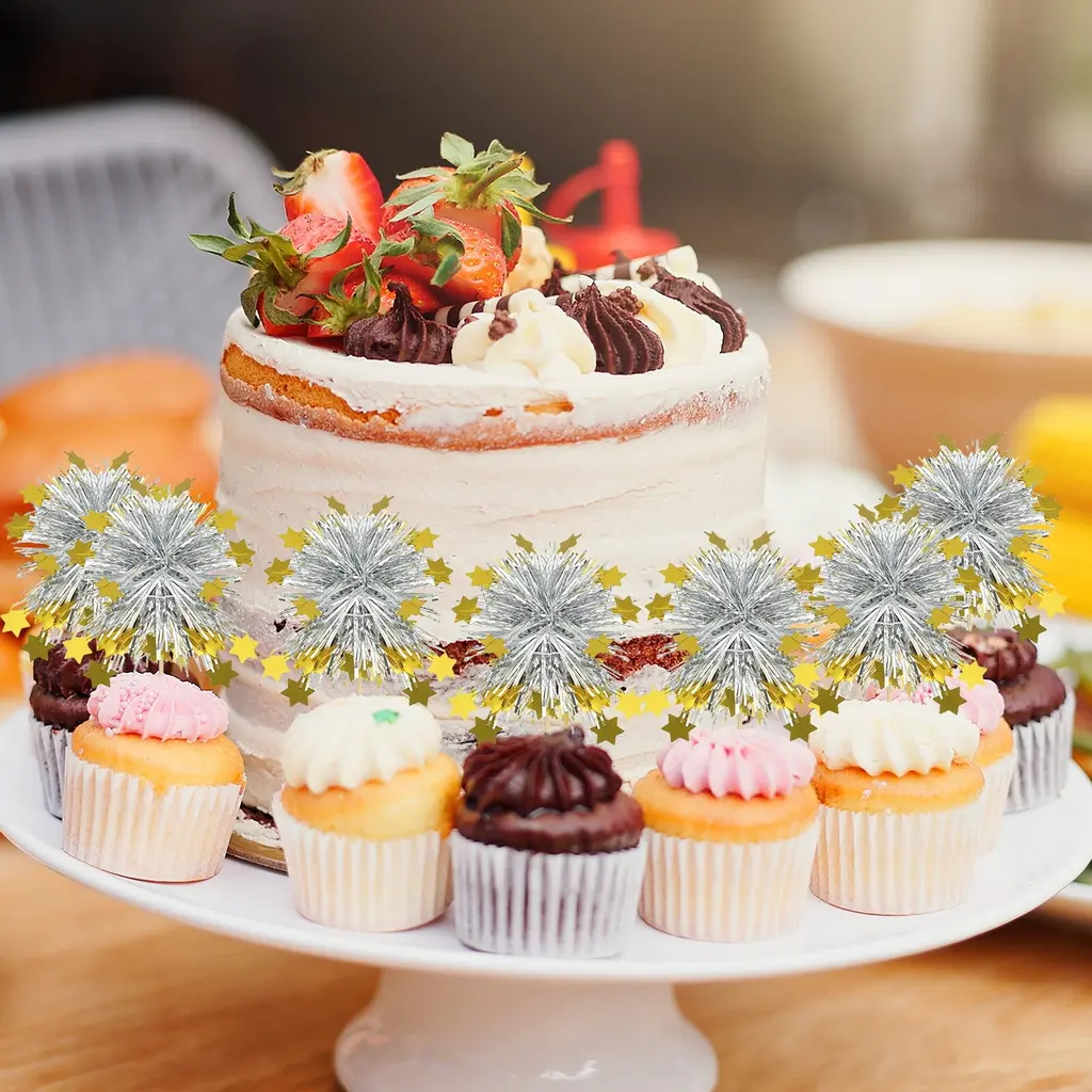 Make your desserts shine with our Firework Cupcake Toppers! Perfect for a variety of celebrations, these vibrant and fun cupcake decorations are sure to welcome your guests.SpecificationColor: SilverMaterial: FoilFirework Cupcake Toppers Size: 15 x 7mm / 0.59 x 0.28 inchesPacking List: 50 Pcs Firework Cupcake ToppersAdvantageMade of good quality foil paper and bamboo stick, not easy to deform and fade, smooth edges without burrs. They will shine in the light, easily enhance the party, and draw people's attention.Assorted ColorsYou will get a lot of sparkle Pink foil firework cupcake toppers, make your cake more shinny and beatiful~NotePlease check the size and color before choosing our products so that you can get suitable results for your keys.