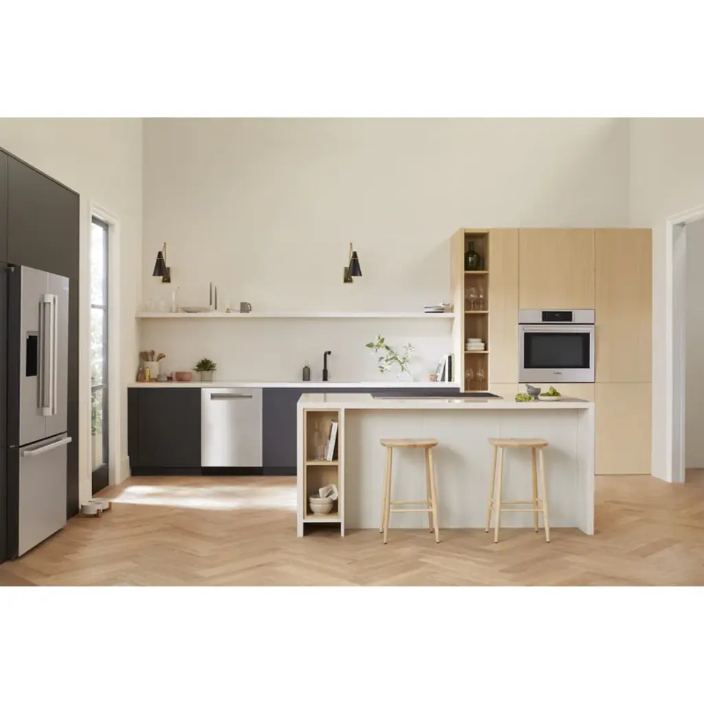The Bosch 500 Series dishwashers with a redesigned pocket handle, deliver a smarter clean and enhanced dry for sparkling dishes every time with advanced PrecisionWash technology and AutoAir drying. With PrecisionWash, intelligent sensors monitor food particles in the wash water and automatically adjust the cycle for a smarter clean. The AutoAir option automatically releases the door at the end of the drying cycle to let fresh air circulate, for noticeably drier dishes. The flexible 3rd rack provides a versatile space for utensils. Get personalized app features like Smart Cycle, hands-free voice control with Amazon Alexa or Google Home and so much more, all when you use Wi-Fi-enabled Home Connect.
