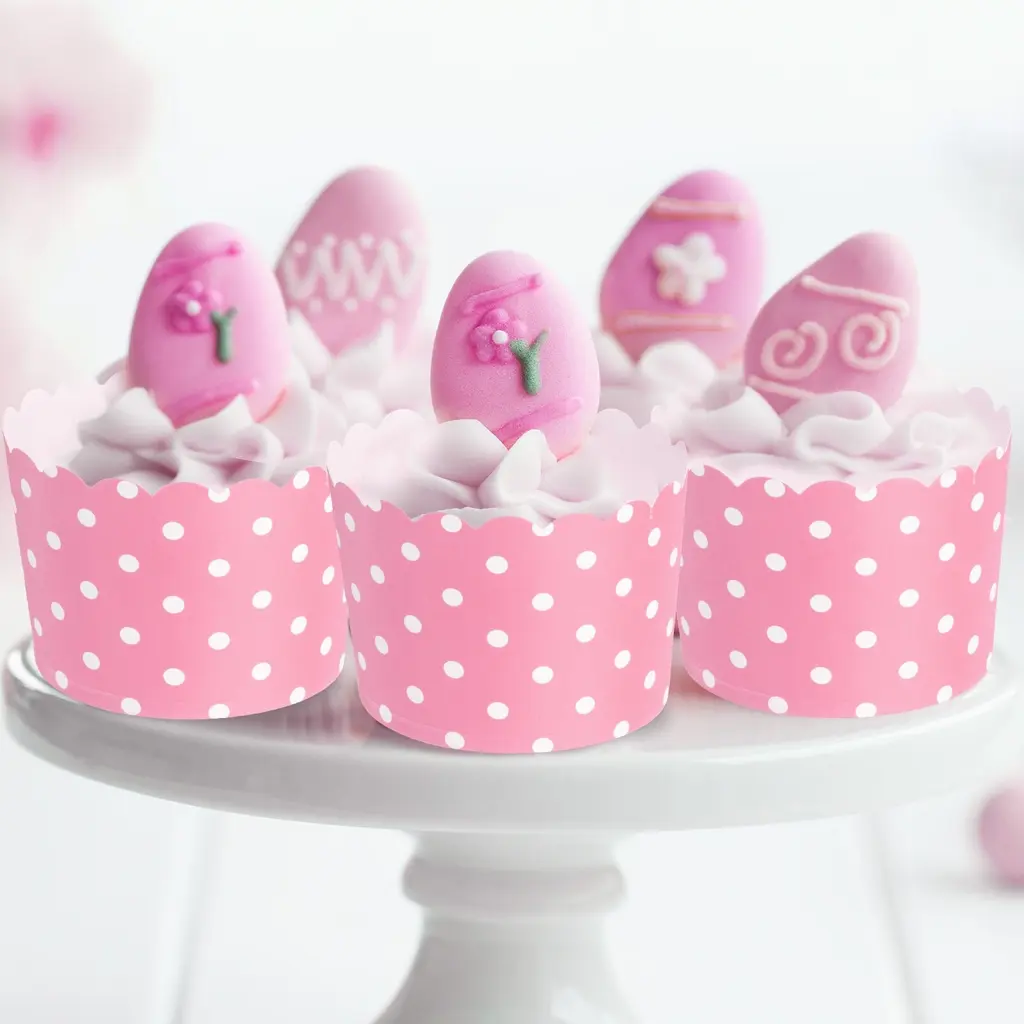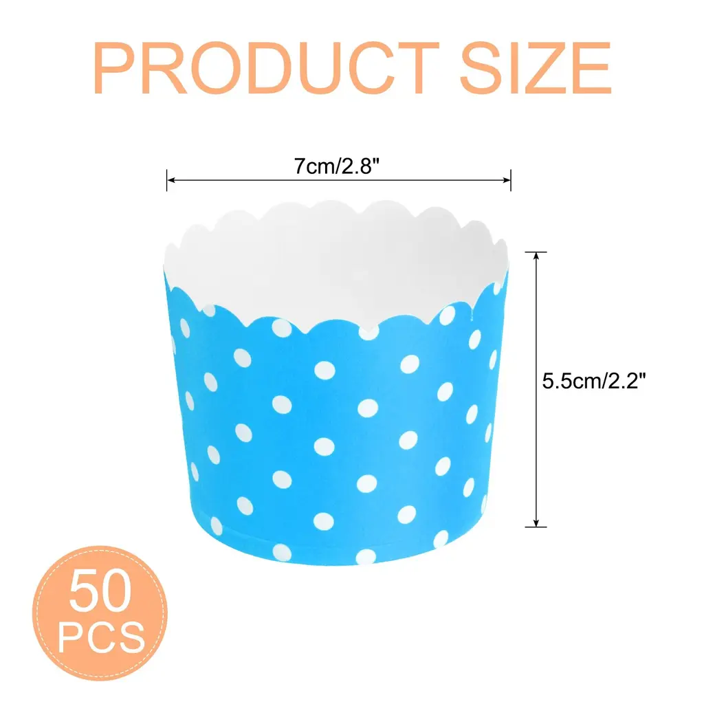 50pcs Cupcake Wrappers For Wedding, Polka Dots & Stripe - Blue
