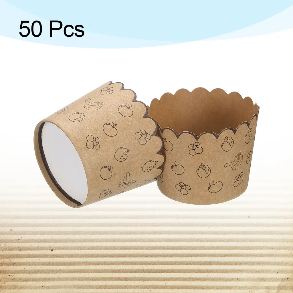 50pcs Paper Baking Cups Brown Kraft Paper Muffins Liner Cupcake Fruit - Standard
