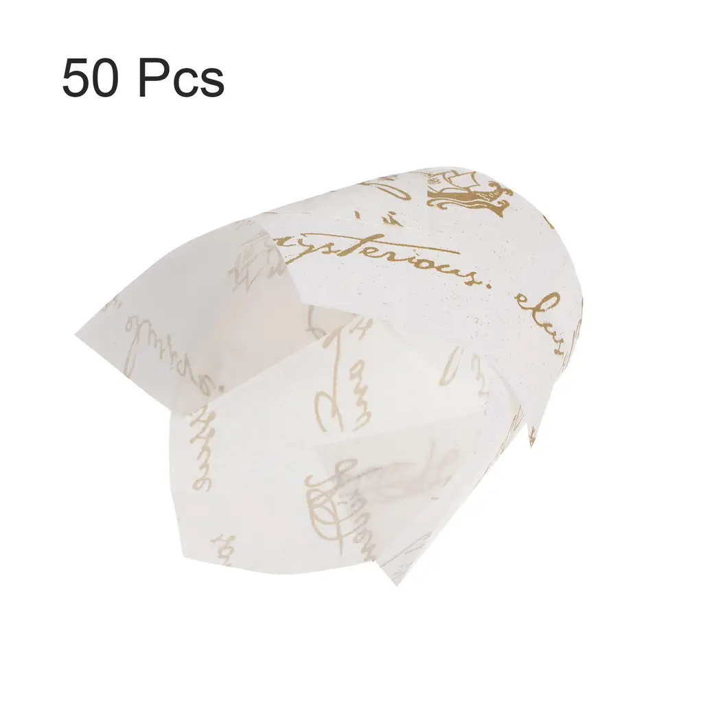 50pcs Tulip Cupcake Liners Paper Baking Cups White With Gold Pattern - White With Gold Pattern - White With Gold Pattern