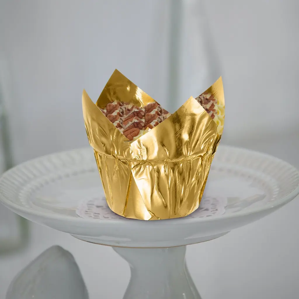 50pcs Tulip Cupcake Liners Standard Aluminum Foil Baking Cups - Golden Tone