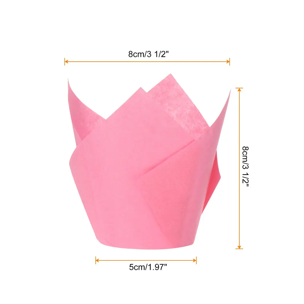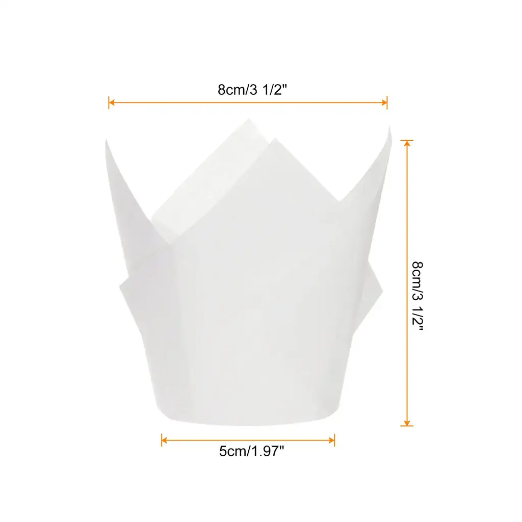 Tulip-style cups are made from greaseproof paper. They are heat resistant, ensuring they can withstand high temperatures without losing shape or color. The surface is grease-resistant and the paper cups are folded together to make them easy to separate from the cake.These cupcake baking liners are suitable for various baking treats such as cupcakes, desserts, and cookie. They are perfect for gathering occasions like birthdays, graduation parties, Halloween, Christmas, bridal shower, and other festive celebrations or delivering to catering event.Tulip cupcake liners fit standard cake pans and they can withstand temperatures up to 220°C/425°F, making them great for baking. Simply fill them with 3-4 ounces of batter, butter, or your desired filling and bake as normal.The tulip shape design creates an elegant product appearance, which can decorate food and make your food look more delicious. There is no need to scrub away baking residues, giving you more time to bake.