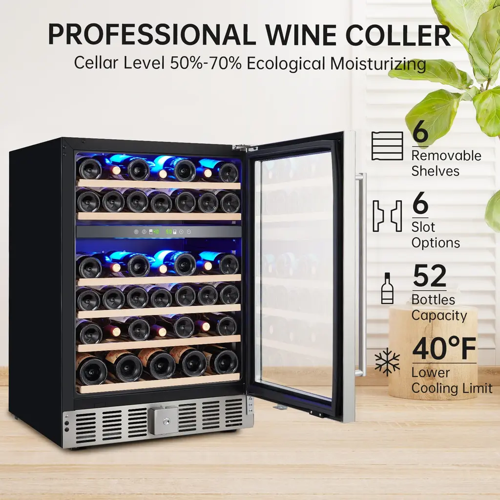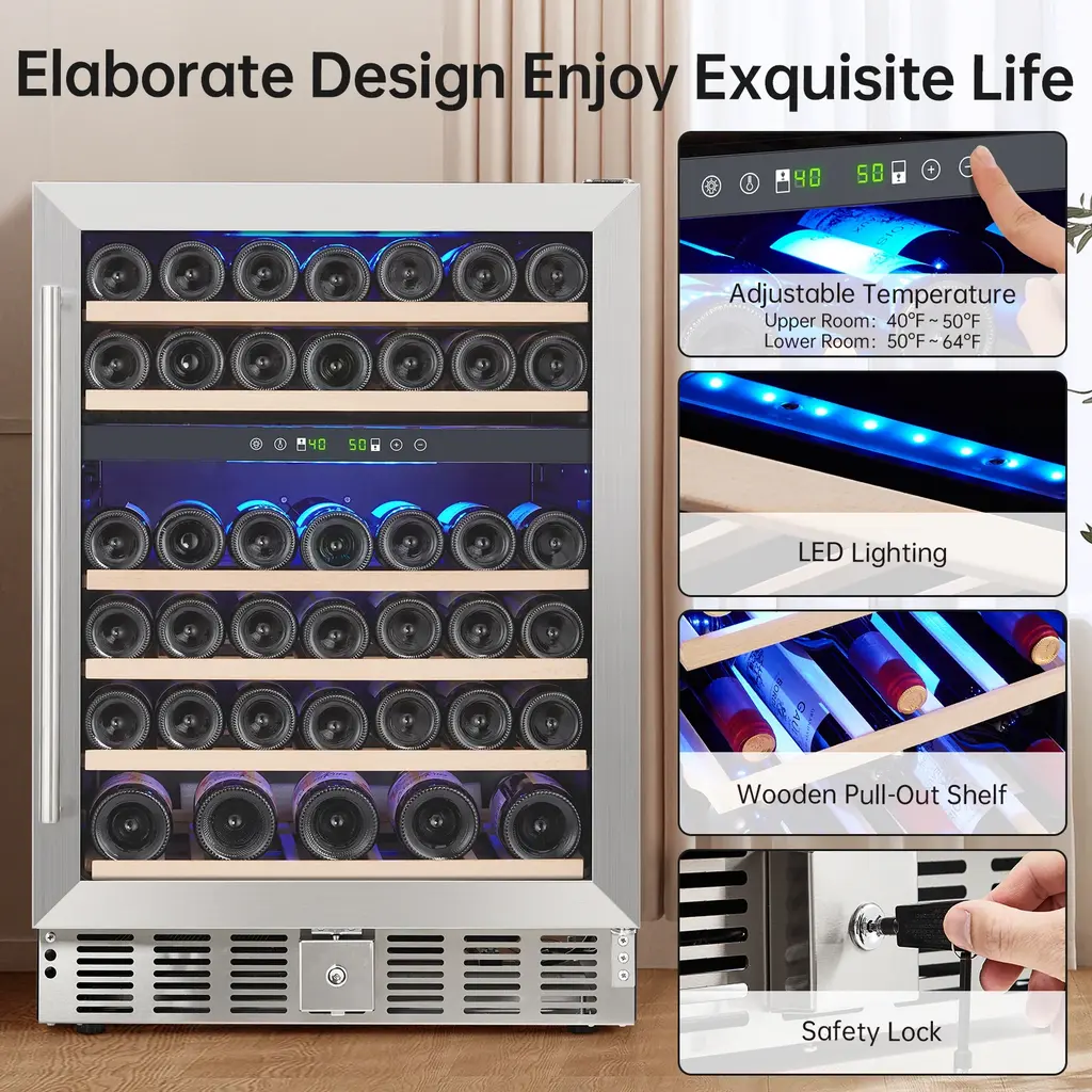 52 Bottles Wine Fridge Dual Zone Wine Cooler Refrigerator - Silver