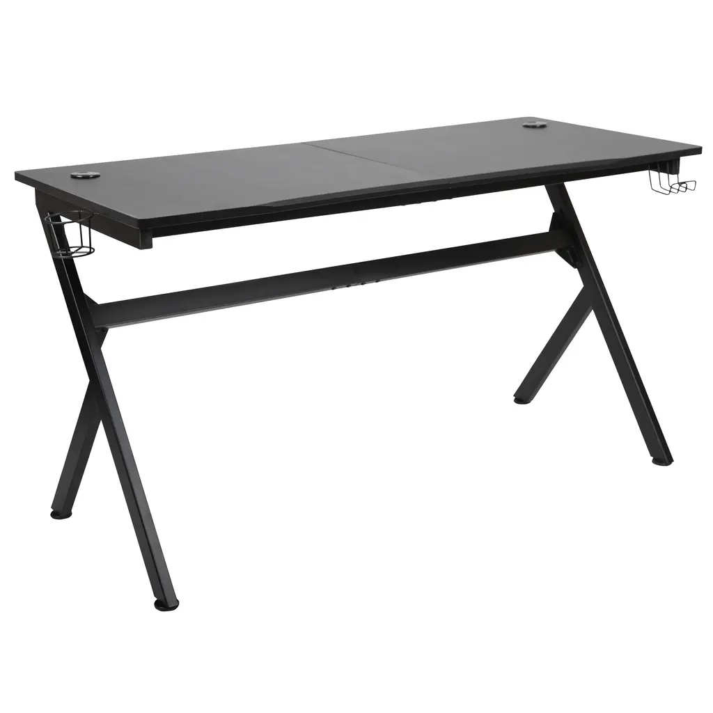 Whether you're on a quest, building cities from the ground up or taking out zombies a great gaming desk is a must have. This gamer workstation features a headphone holder and cupholder to free up your hands and 2 cable management holes to keep you organized. This extra large computer table is specifically designed to hold your gear and has space for your gaming console and controllers, laptop and other necessities such as dual monitors, a keyboard and a gaming mouse. This contemporary home computer desk has a removable padded top so the whole surface acts as a mouse pad. The ultra strong powder coated steel frame holds up to 110 lbs weight capacity. This computer desk for gaming gives you generous leg room and ample space for a desktop tower or a 6 can mini-fridge for those marathon gaming sessions. Self-leveling floor glides will ensure your platform stays stable. This gaming station desk assembles in less than 30 minutes with the included tools. A premium home office PC table is great for all gamers and will be right at home in your home office, bedroom, dorm room, or gaming room. Pair this gaming desk with one of our gaming racing office ergonomic computer PC adjustable swivel chairs for the ultimate experience.
