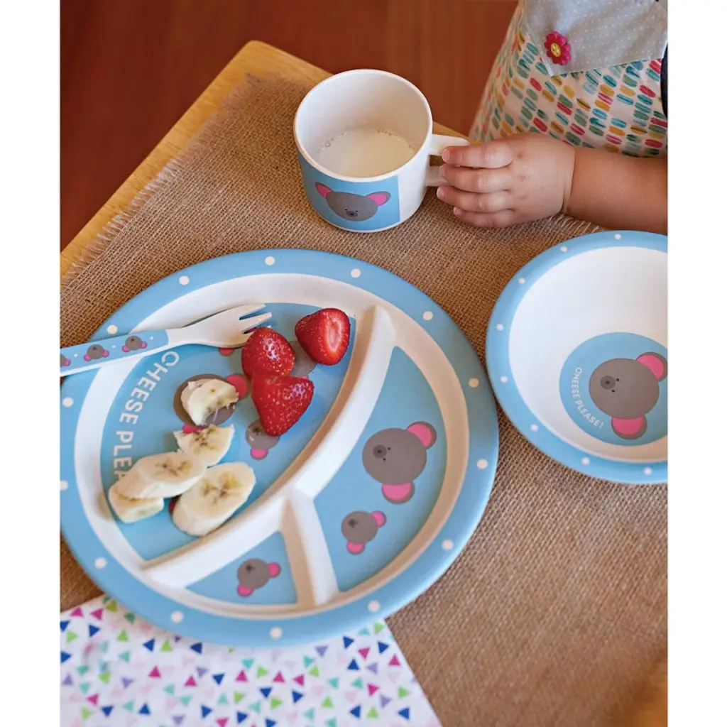 5Pc Bamboo Fiber Mouse Dinnerware Set Blue - Red Rover: Kids Dinnerware, Toddler Dishes, Baby Plate Set