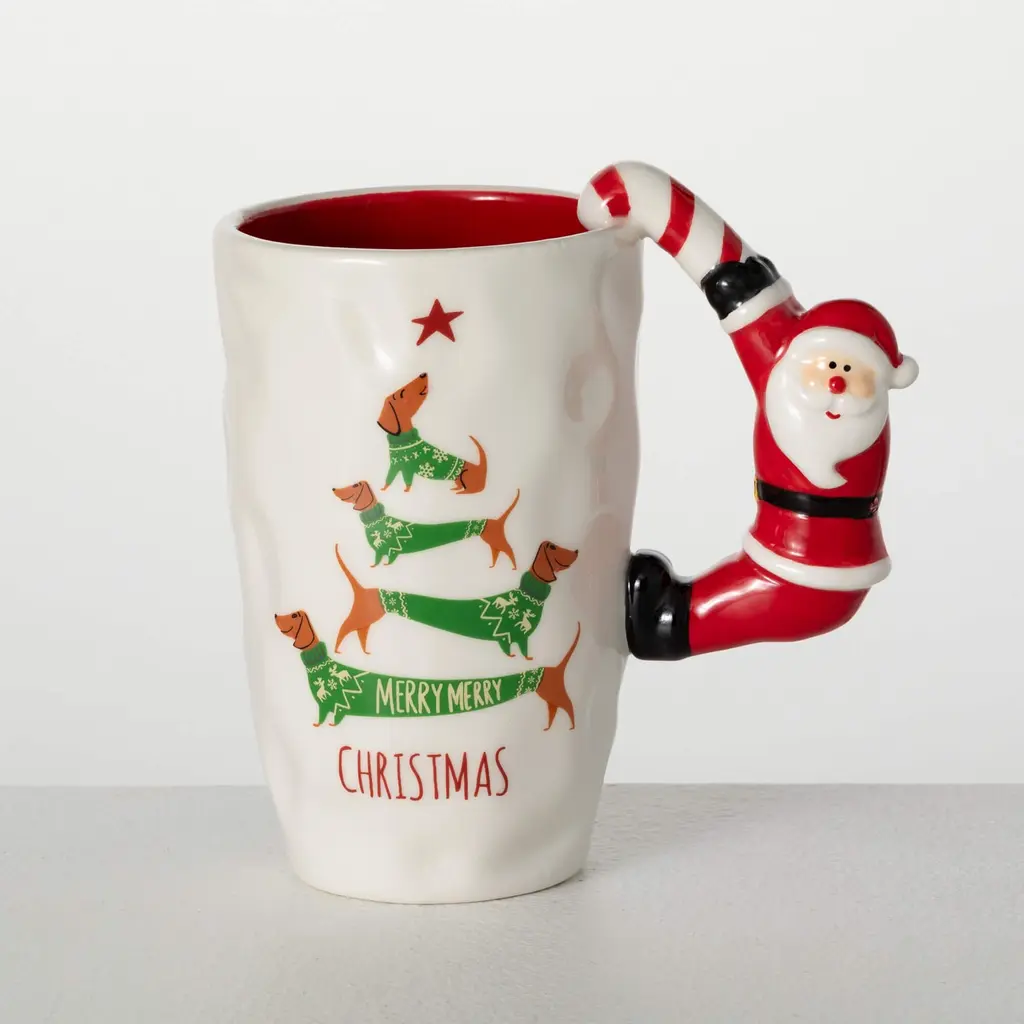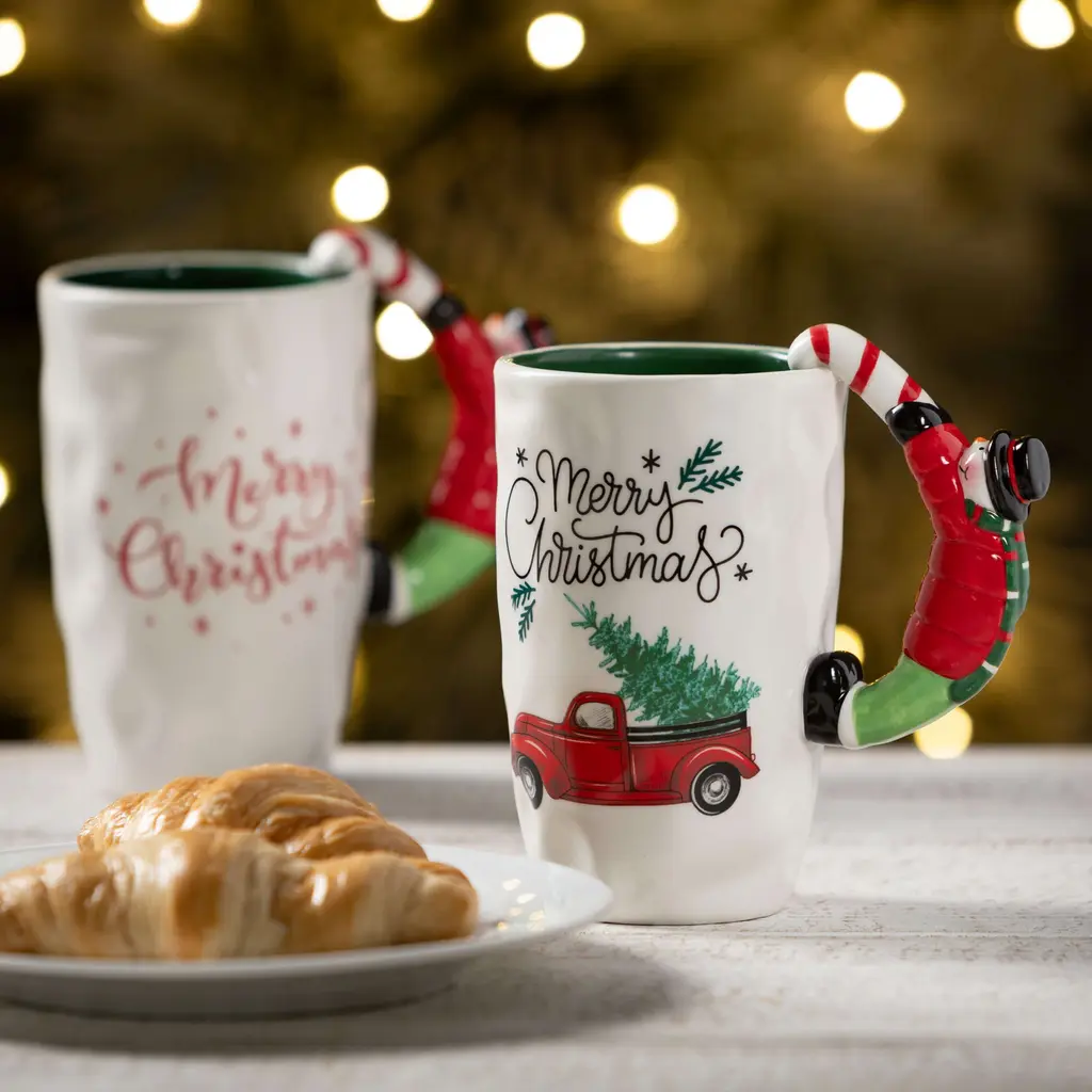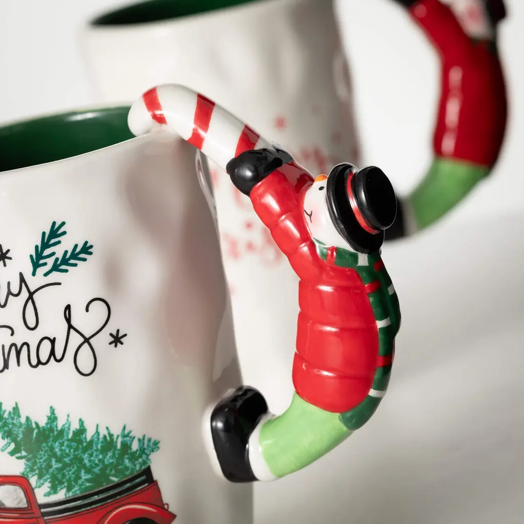 Start your morning the cheerful, festive way with this set of two cheerful Christmas mugs. The exteriors feature classic wintery sentiments to get you in the holiday spirit from the first sip of your hot chocolate. The striped handles feature a whimsical man, decked out for the Holidays, bringing a smile to your face as you cradle the warm mug in your hands. With these mugs on display in your kitchen all season, your home will radiate good cheer wherever you brew. • Cheerful Merry Christmas Mug Set: Spread holiday cheer with this vibrant set of merry Christmas mugs, perfect for enjoying your favorite festive beverages with family and friends. • Quality Ceramic Construction: Crafted from durable ceramic, these mugs offer both functionality and style, making them ideal for sipping hot cocoa, coffee, or tea during the holiday season. • Comfortable Size for Enjoyable Drinking: Measuring 6.25 inches tall x 3.5 inches wide x 6.25 inches long, these mugs provide ample space for indulging in your favorite hot drinks, ensuring a cozy and festive experience. • Colorful Multicolor Design: Featuring a lively multicolor design with cheerful holiday motifs, these mugs add a playful touch to your Christmas table setting, enhancing the joyous atmosphere. • Versatile Gift Option: Whether for yourself or as a thoughtful holiday gift, this set of merry Christmas mugs is sure to delight recipients of all ages, making them a versatile and heartwarming choice for spreading holiday cheer. • Experience Timeless Elegance with Sullivan's Home Decor - Celebrating Over 55 Years of Excellence! Explore our extensive collection of quality products, meticulously curated to suit every style, season, and occasion. From classic designs to on-trend accents, Sullivan's Home Decor seamlessly blends tradition with modernity, ensuring there's something special for everyone. Transform your living spaces with our enduring commitment to style and sophistication. • Each piece measures 6.25"L x 3.5"W x 6.25"H