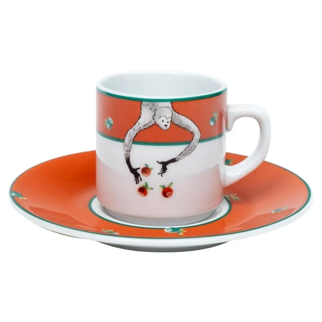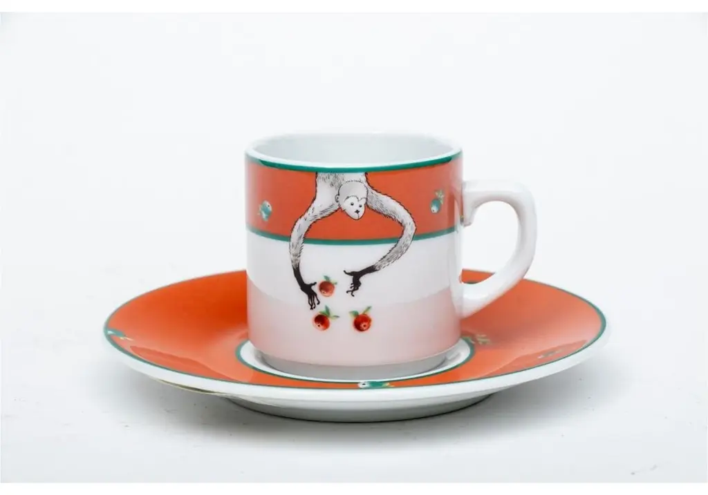 6 Bernardaud France Le Cirque N.y. Custom Espresso Orange Monkey Cup & Saucer