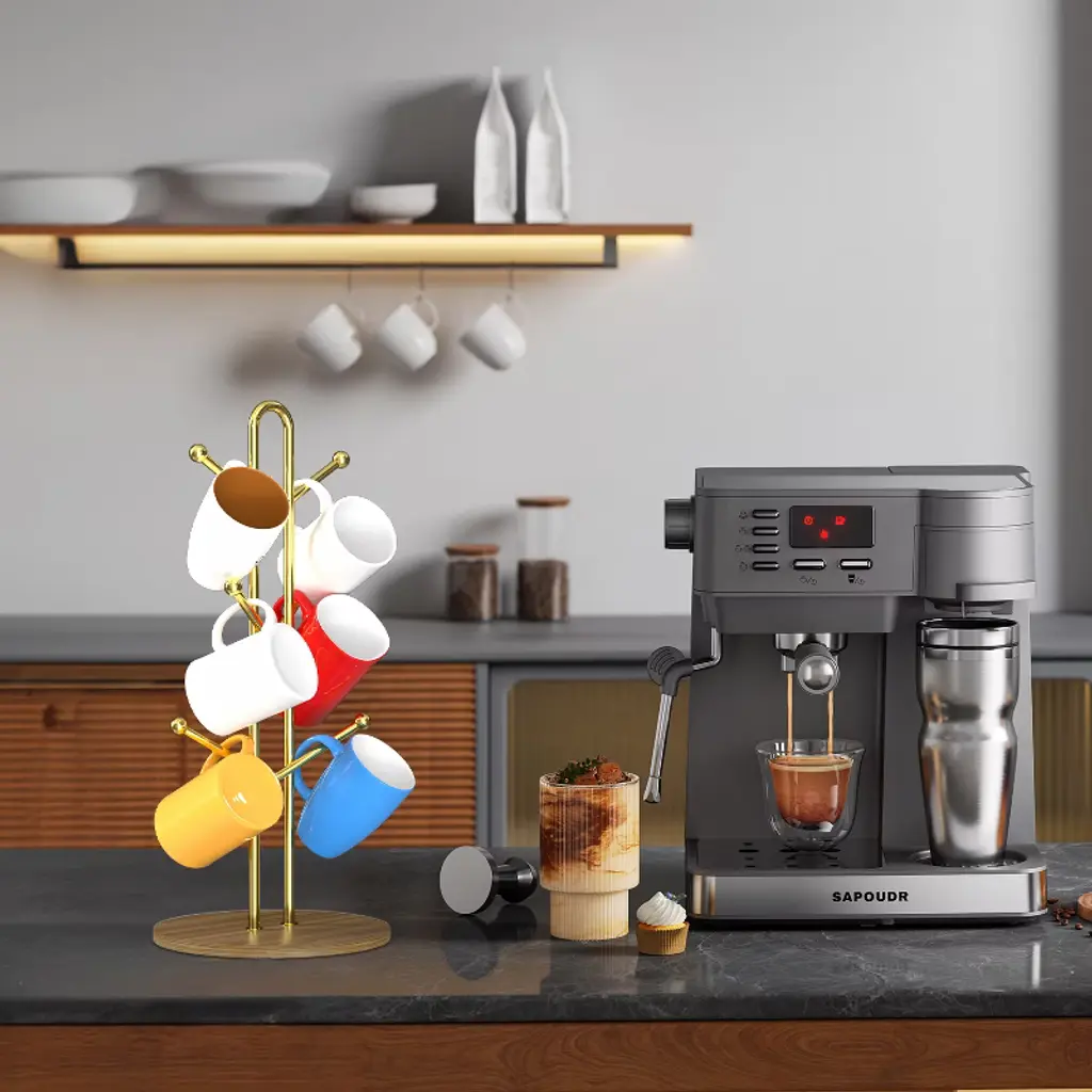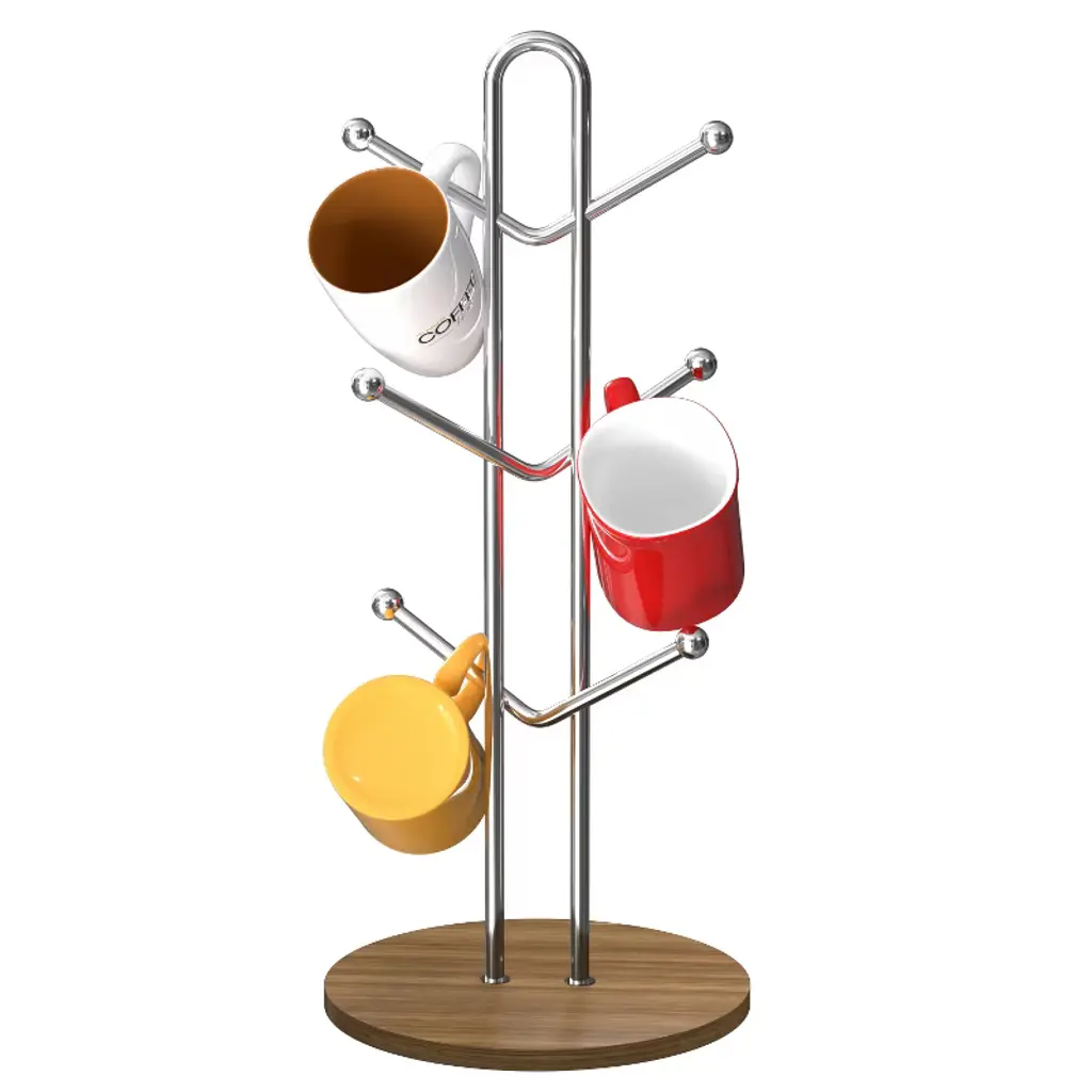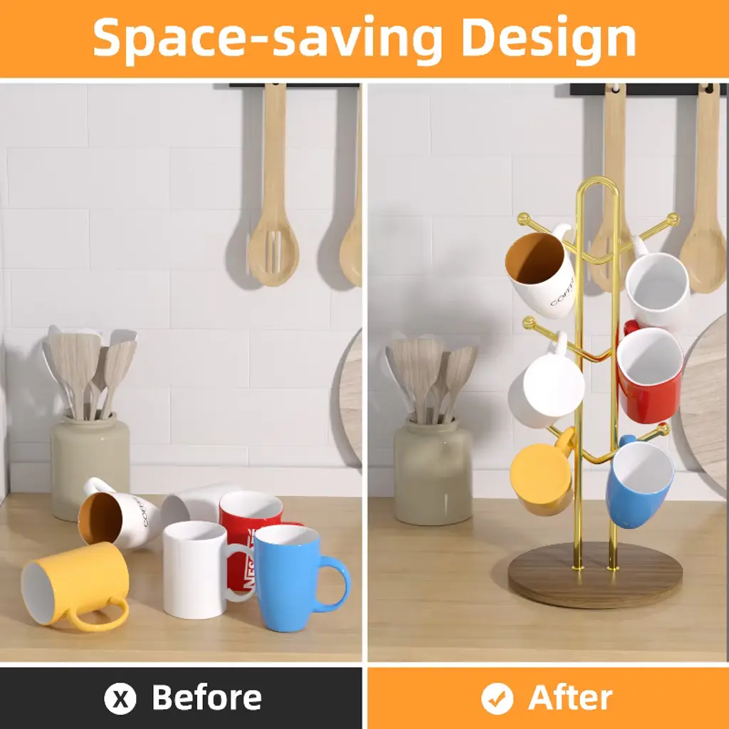 Mug Rack Tree, Decorative Flower Pattern Base Metal Mug Holder, Kitchen Coffee Mug Tree Countertop Tea Cups Holder Stand, Coffee Cup Dryer with 6 Hooks