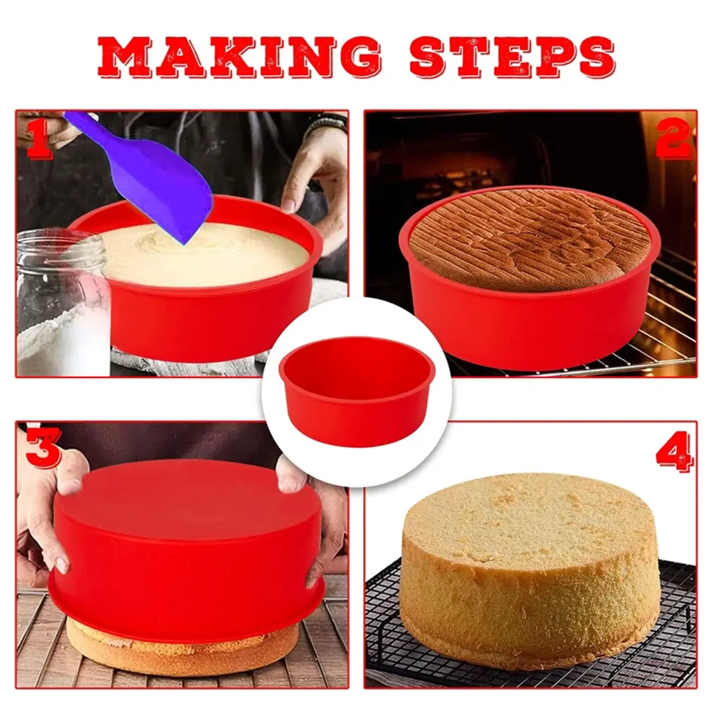 1️⃣ 【Food-grade safety material】The red round cake molds are made of quality silicone material, safe, reliable, and durable, which can be placed in a microwave, oven, refrigerator, freezer, and dishwasher Tear-resistant design, service life of more than 1,000 times 2️⃣ 【6-inch professional specifications】 ✔ Scientific capacity design, more uniform baking temperature ✔ Built-in intelligent scale line, precise control of batter amount ✔ Perfect match for standard cake decoration turntable 3️⃣ 【Patented non-stick technology】One-click easy de-molding ✨ Nano-mirror process, zero residue non-stick effect ✨ No need to apply oil/powder, keep the original flavor of the ingredients ✨ Bottom elastic assist design (exclusive patent) ✨ The demolding success rate is as high as 100%, and the pattern is fully presented 4️⃣ 【Minimal cleaning system】3 seconds to refresh ◈ Can be directly placed in the dishwasher for high-temperature disinfection ◈ Rinse with clean water, no cleaning dead corners ◈ Save space 5️⃣ [All-round baking solution] Commercial-grade quality 🎂 Applicable dessert types: → Chiffon/Cheese/Mousse/Lava Cake → Muffin/Bread/Pudding/Chocolate 🎉 Perfect application scenarios: → Home baking/Dessert shop commercial use → Birthday party/Wedding dessert table