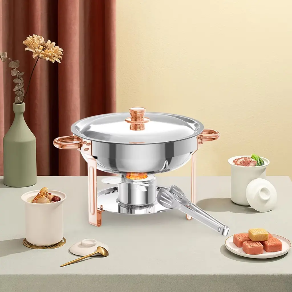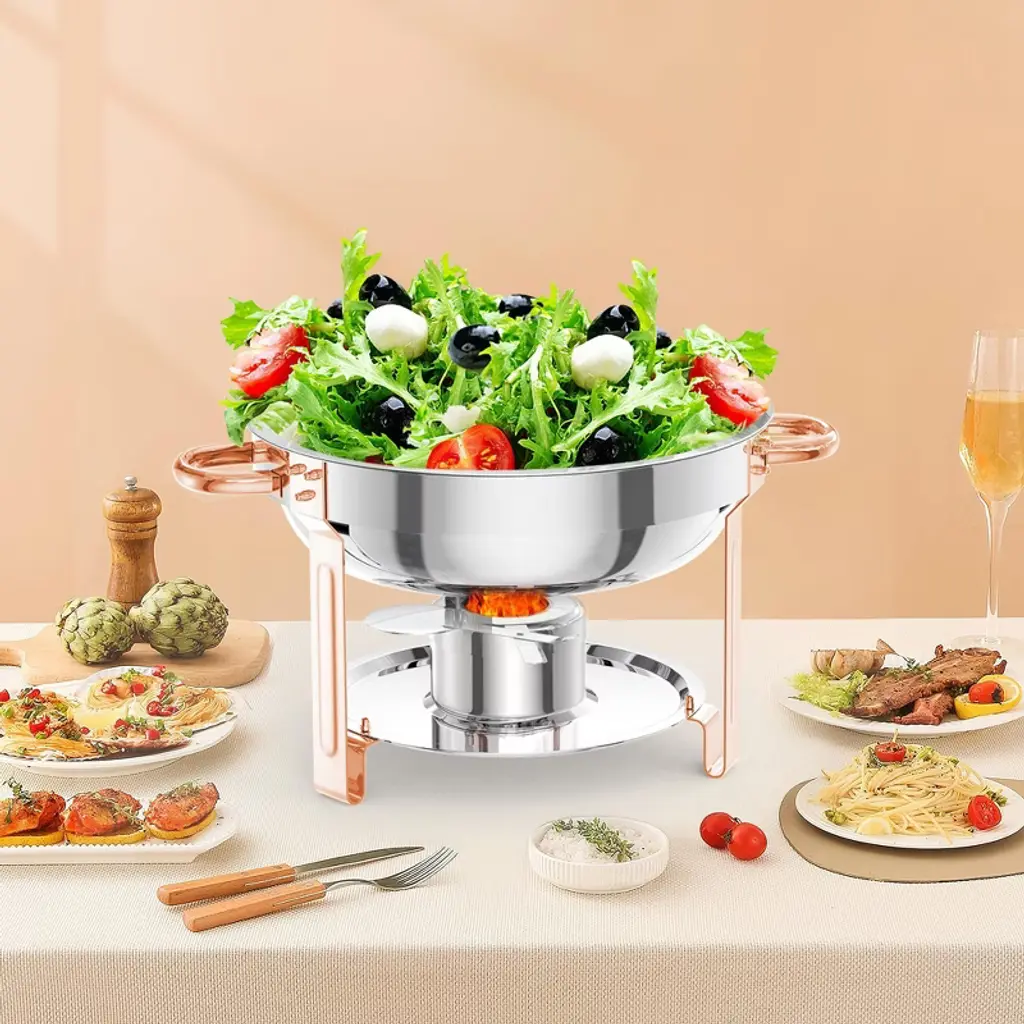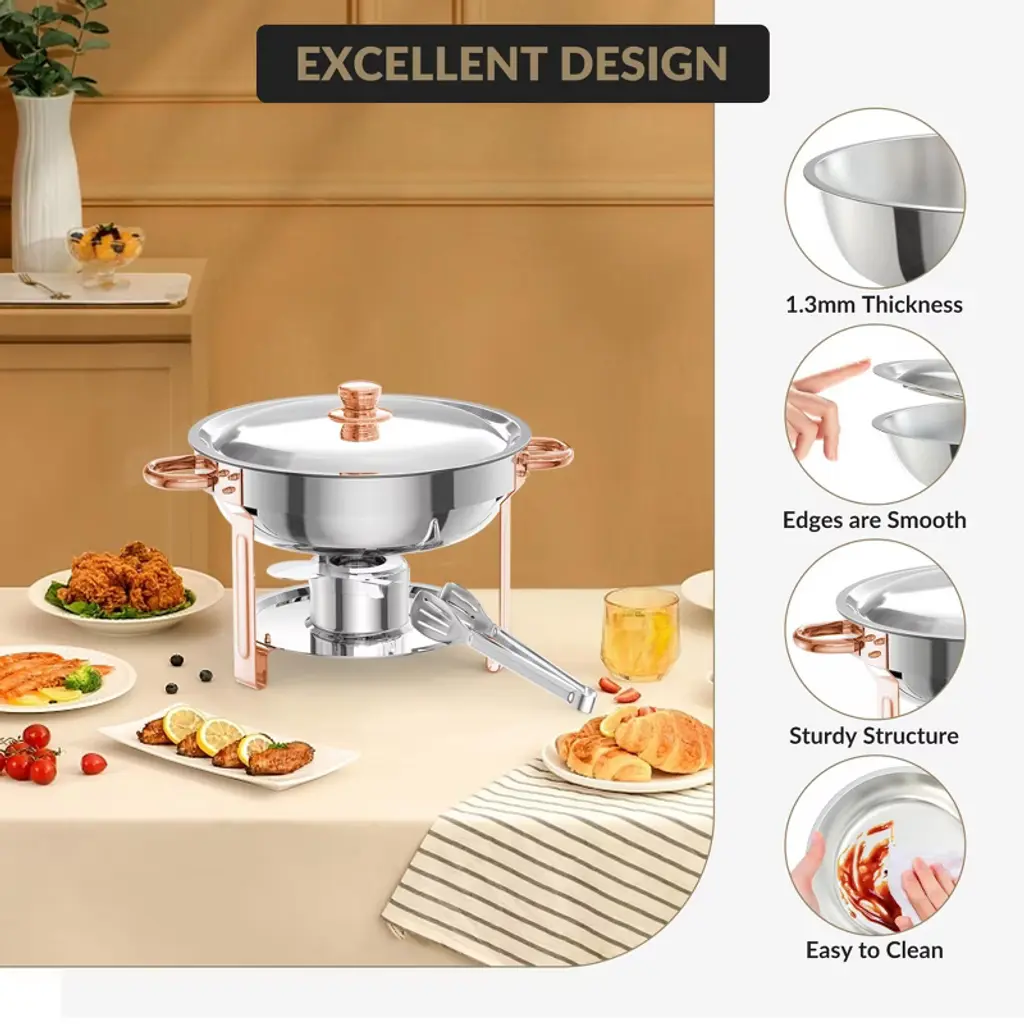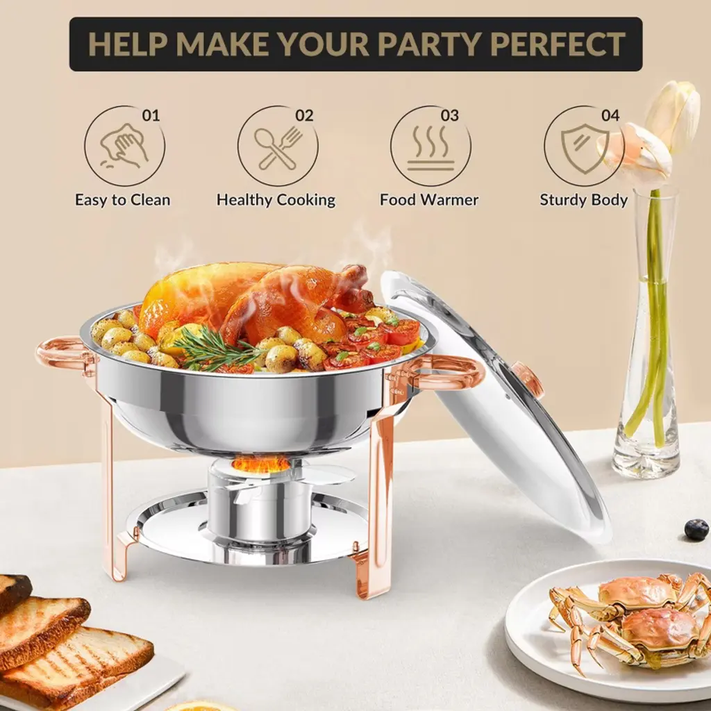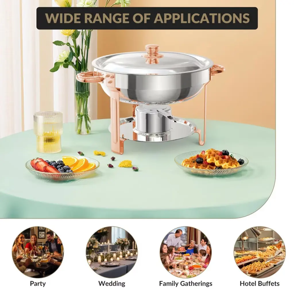 6-pack 5Qt Round Stainless Steel Chafing Dishes Set With Lid Holder & Cover - Buffet Warmers For Parties/festivals/weddings