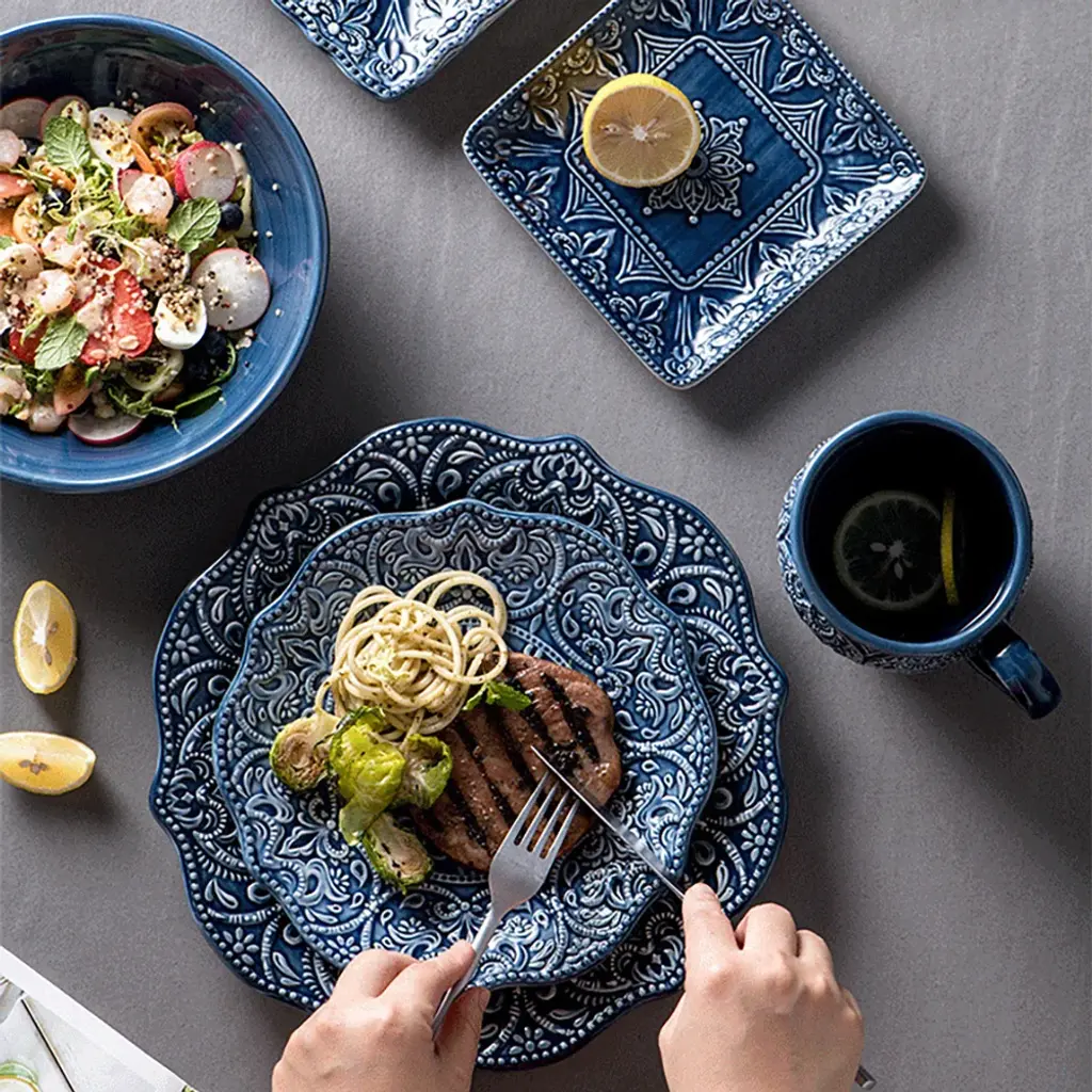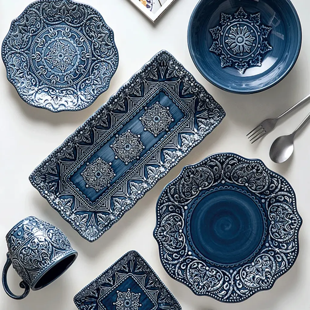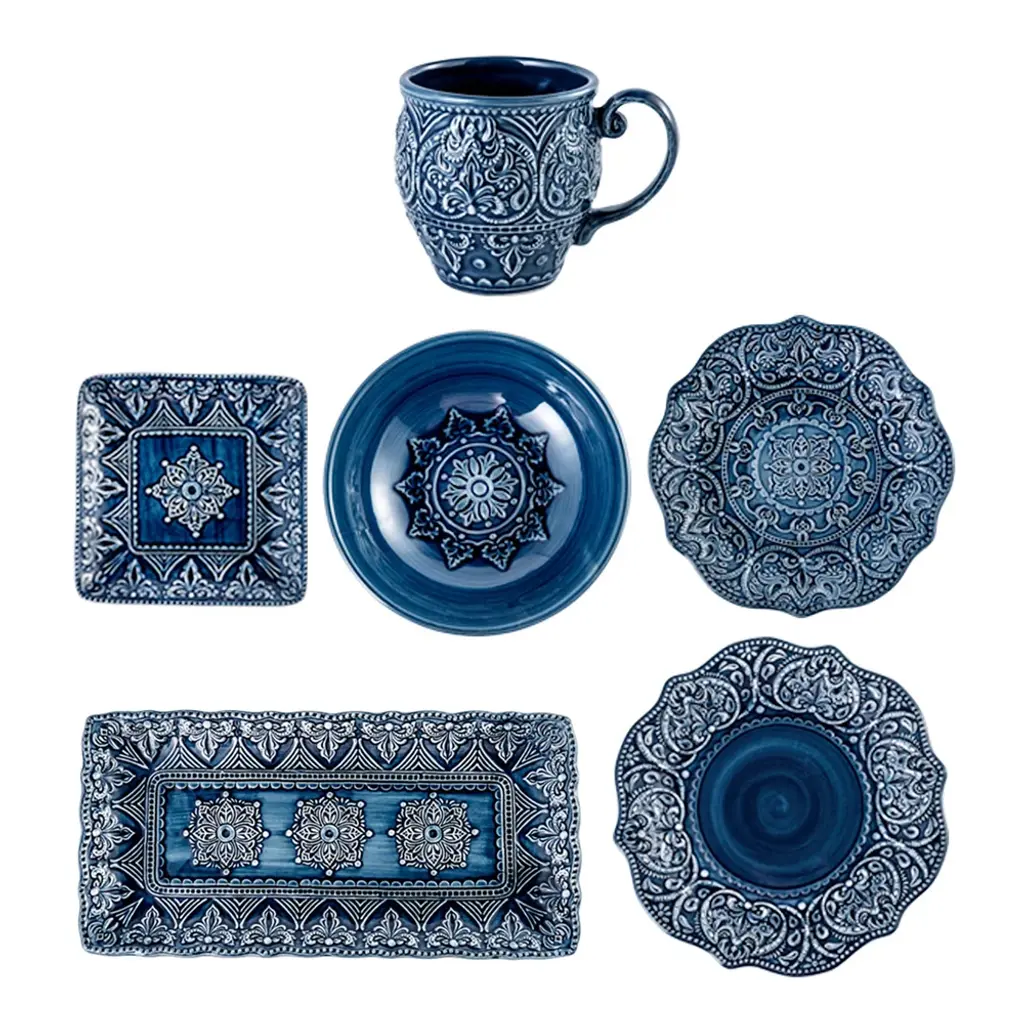 6-Piece Dinnerware Sets Service For One Person European Ceramic Blue Dinnerware Set