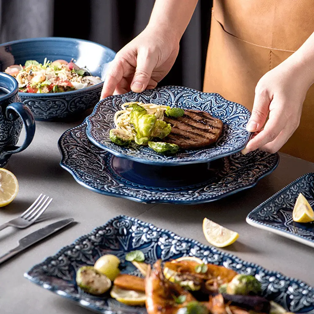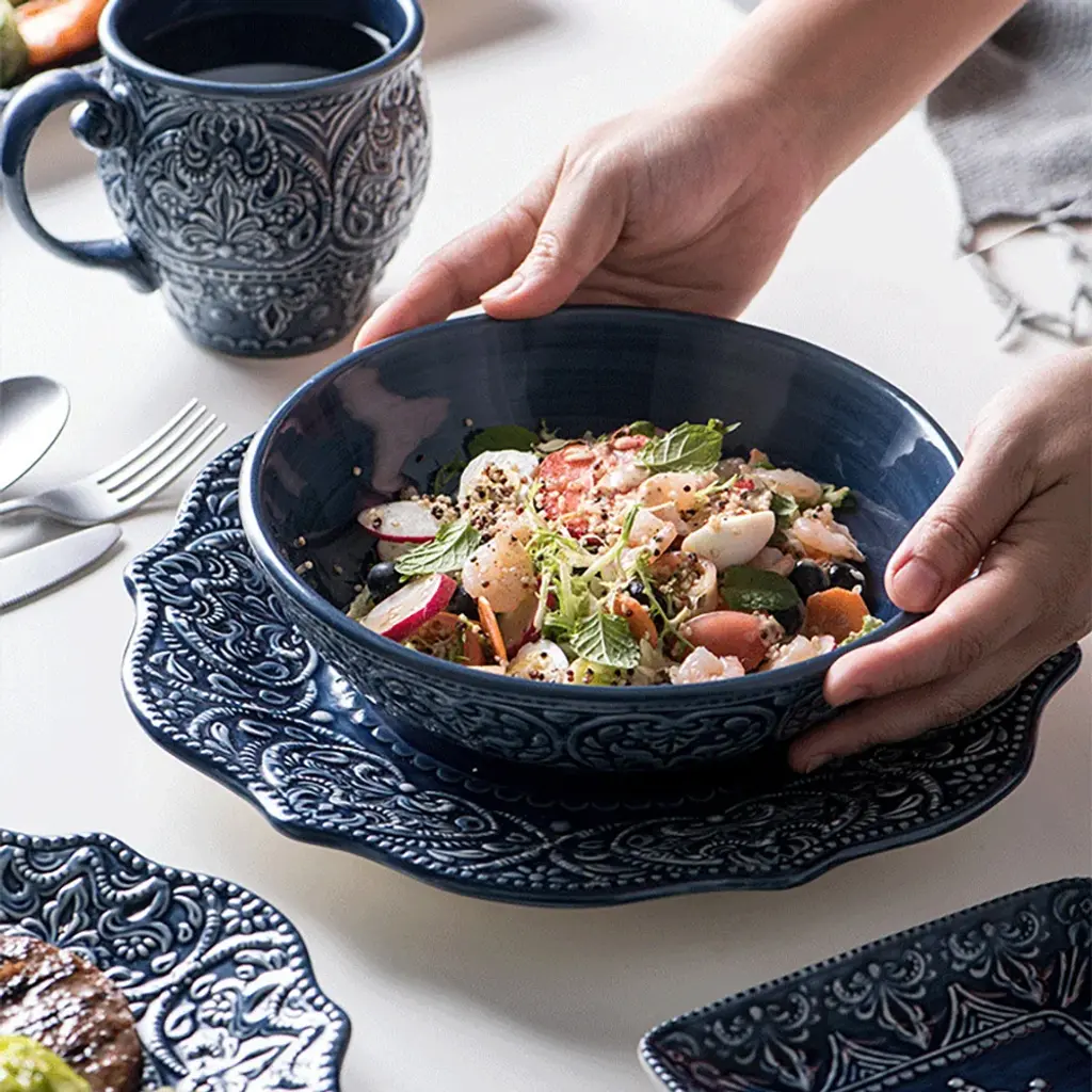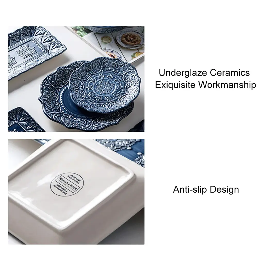 6-Piece Dinnerware Sets Service For One Person European Ceramic Blue Dinnerware Set