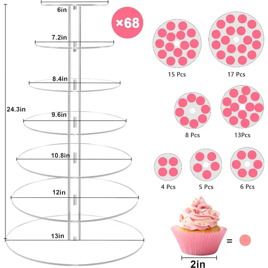 7-tier Large Cupcake Stand Acrylic Cupcake Tower Transparent Display Stand Ideal Choice For Parties, Weddings, And Baby Full-moon Celebrations