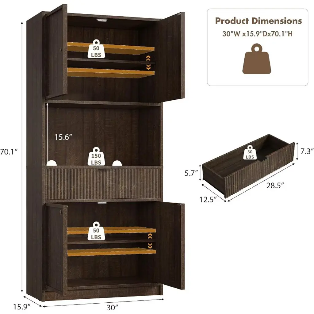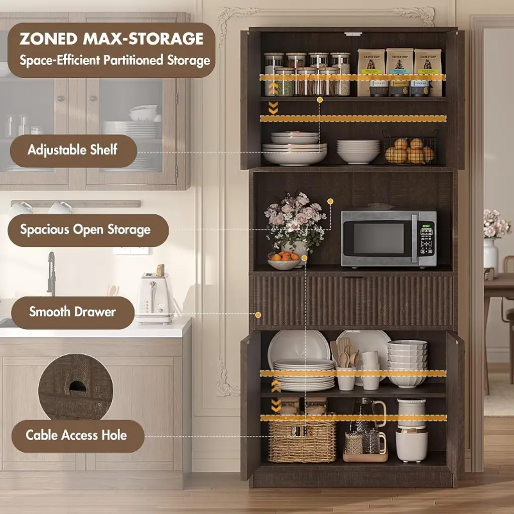 70" Fluted Pantry Cabinet With Countertop,tall Storage Cupboard With Doors&drawer, Freestanding Kitchen Organizer For Dining,living Room
