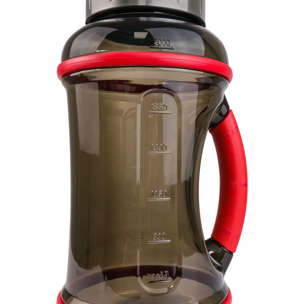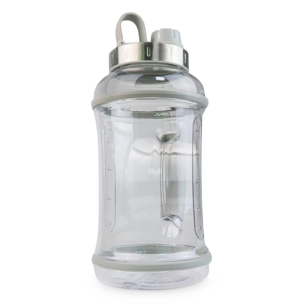 Hydration - it's the most basic human need. With these 70oz Water bottles, you can take your daily dose of water with you anywhere you go. The bottles are BPA free, so you never have to worry about toxic chemicals transferring from the bottle to your water. The convenient carry handle makes this bottle the perfect buddy for exercise, work or even at home hydration. The screw on lid adds easy access for drinking while the silicone snapping around the lid ensures the bottle is leak proof at all times. The durable material gives the bottle a glassy see-through look without the worry of breakage. Designed for preventing accidental damages to support your workout, game, sports and outdoor exploration. Available in 4 unique colors, these bottles are a classic item for. Hydrate in style this summer with these super strong 70oz Water Bottles. Available Colors: Pink, Blue, Black, Clear. Sturdy Construction with thick strong handle, reinforced leak proof lid, and screw off cap. Measurement markings, in ml and oz, help you keep track of your hydration progress! Portable with strong silicone carry handle with matching silicone handle and guards. Opening Measurement - Screw Off Cap: 1" Leak Proof Lid: 3.3"