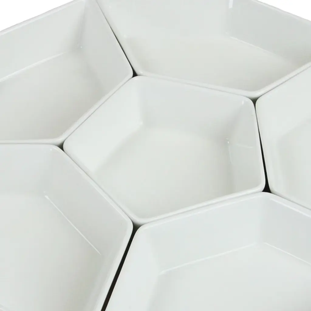 7Pc Stoneware Beautiful Geo Party Serving Set White - Elama