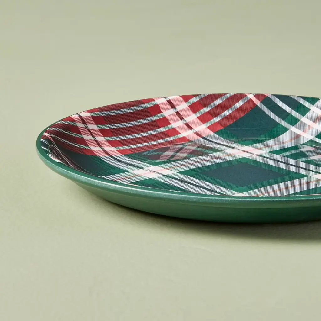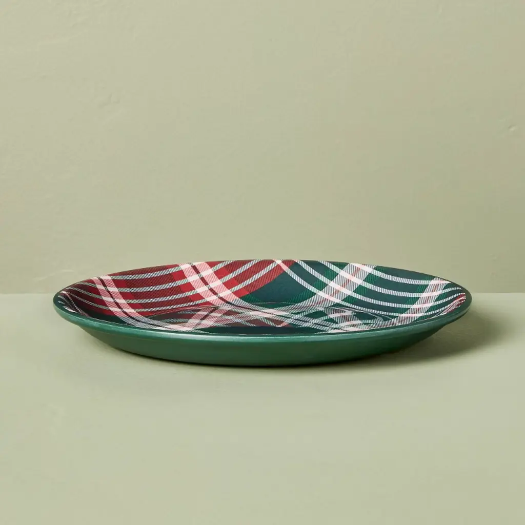 Upgrade your dinnerware collection with this Salad Plate from Hearth & Hand™ with Magnolia. Made of melamine, this salad plate features a green and red signature plaid design that adds a festive touch to any holiday table setting. Designed in a round shape, this BPA-free plate is also dishwasher safe for easy cleaning. Hearth & Hand™ with Magnolia: Gather • Create • Enjoy