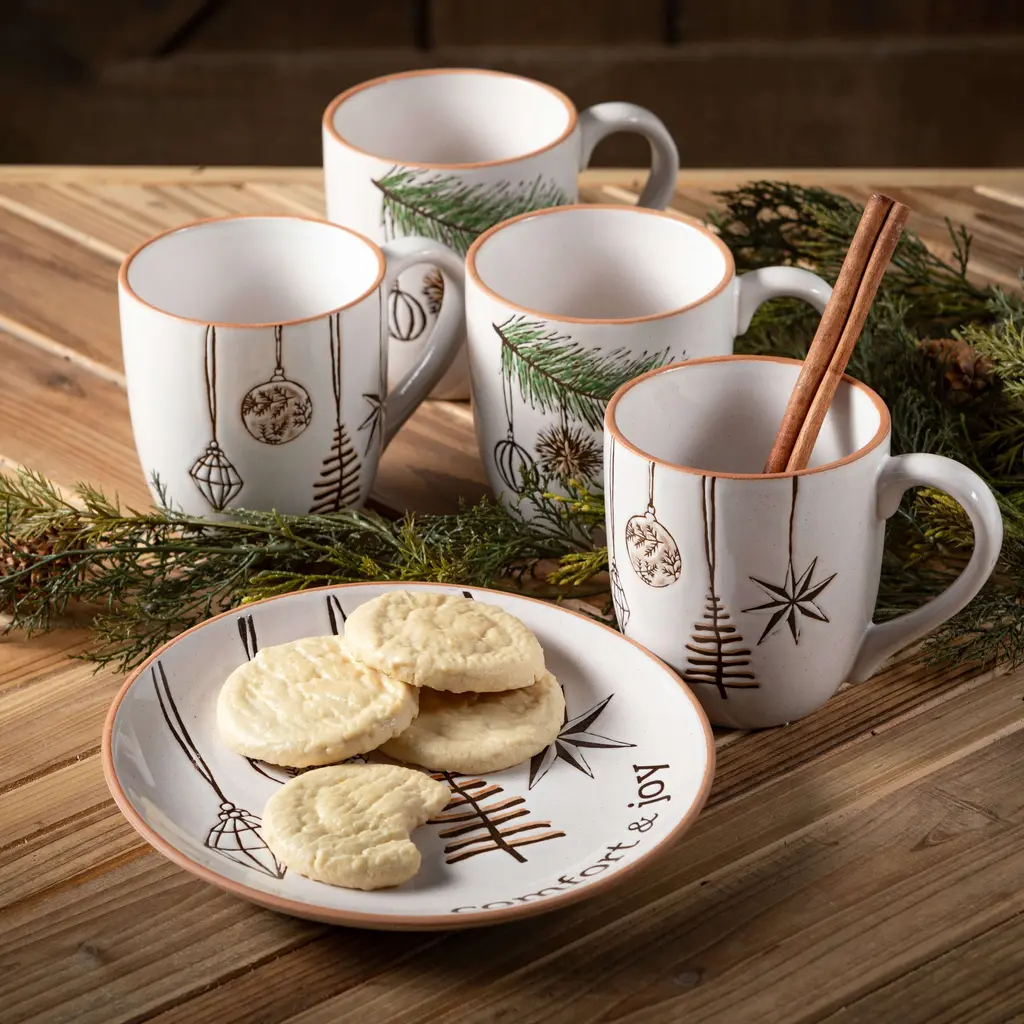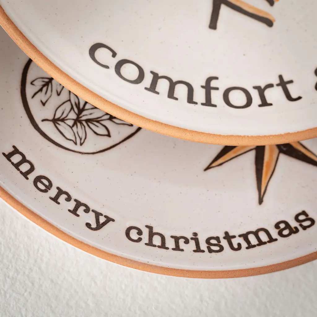 These modern white cozy snack plates make gathering round the Tv or kitchen table this Christmas even more inviting. The set of four plates are embellished with ornaments and pine patterns, bringing simple festive cheer to your snack time spread. Whether loaded with cookies, chips or cheesy bites, these exclusive snack plates help set the perfect cozy and comfortable Scandi atmosphere for holiday gatherings. • Sleek Modern White Cozy Snack Plates: Elevate your holiday entertaining with this set of modern white cozy snack plates, perfect for serving appetizers, desserts, or snacks with style during Christmas gatherings. • Quality Ceramic Construction: Crafted from durable ceramic, these plates offer both functionality and aesthetic appeal, making them ideal for showcasing your favorite holiday treats while adding a touch of elegance to your table setting. • Generous Size for Serving: Measuring 0.75 inches tall x 8.75 inches wide x 8.75 inches long, these plates provide ample space for arranging a variety of delicious snacks, ensuring a delightful dining experience for your guests. • Versatile Multicolor Design: With their versatile multicolor design, these plates complement any Christmas decor theme, making them suitable for both formal and casual holiday gatherings. • Set of 4 Plates: This set includes four modern white cozy snack plates, making it easy to entertain family and friends during the festive season while spreading holiday cheer and creating lasting memories. • Experience Timeless Elegance with Sullivan's Home Decor - Celebrating Over 55 Years of Excellence! Explore our extensive collection of quality products, meticulously curated to suit every style, season, and occasion. From classic designs to on-trend accents, Sullivan's Home Decor seamlessly blends tradition with modernity, ensuring there's something special for everyone. Transform your living spaces with our enduring commitment to style and sophistication. • Each piece measures 8.75"L x 8.75"W x .75"H