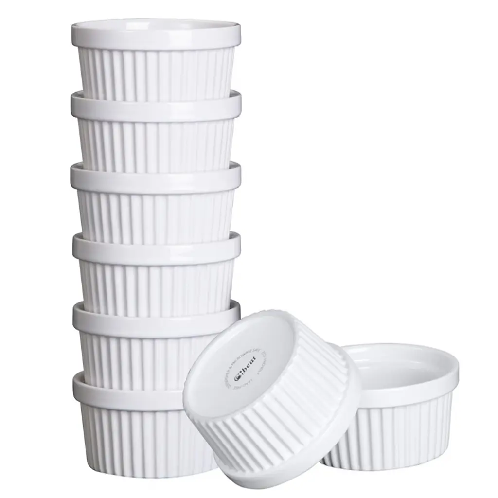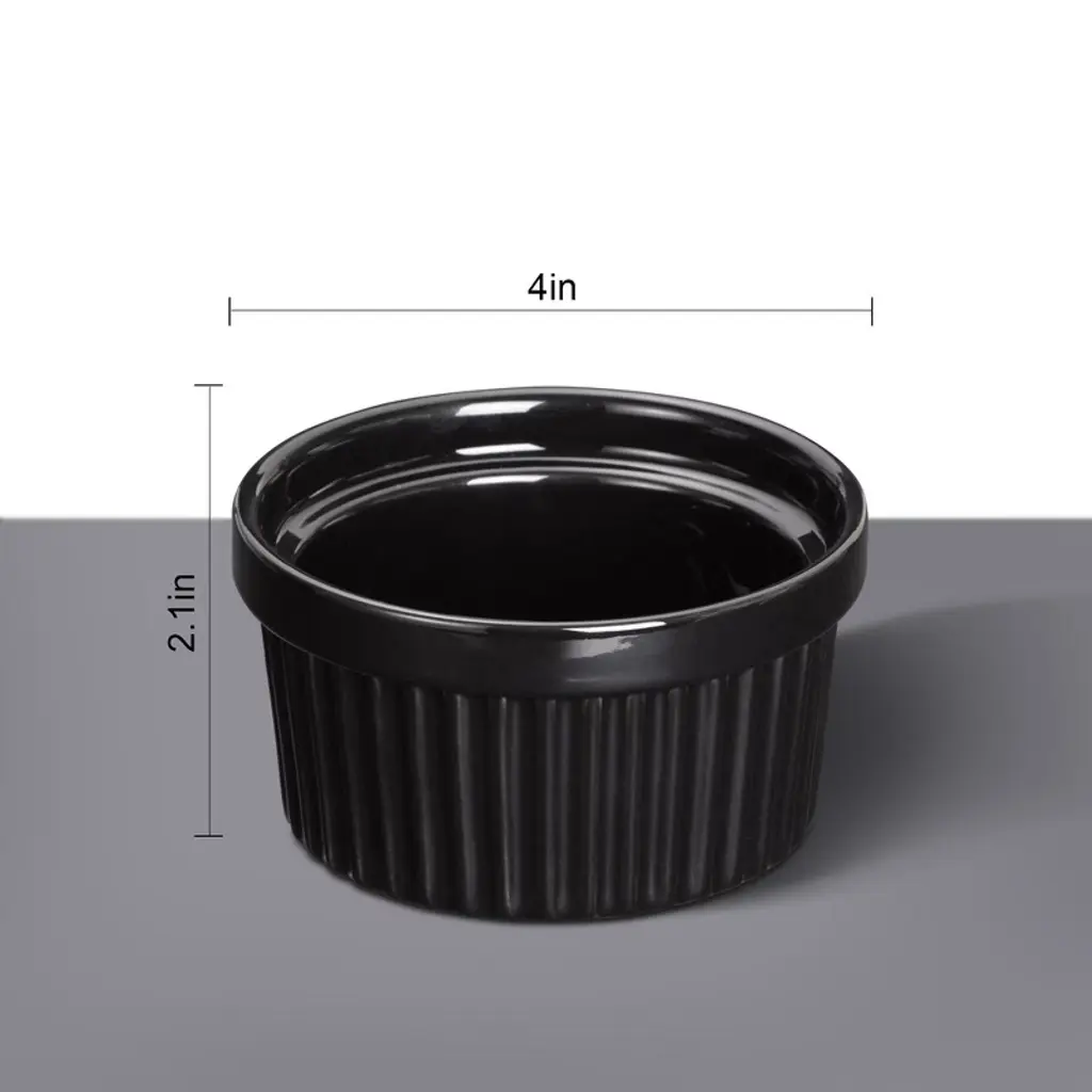 8 Oz Ramekins Set of 8, Ceramic Ramiken Oven Safe, Stackable Souffle Cups (Black)