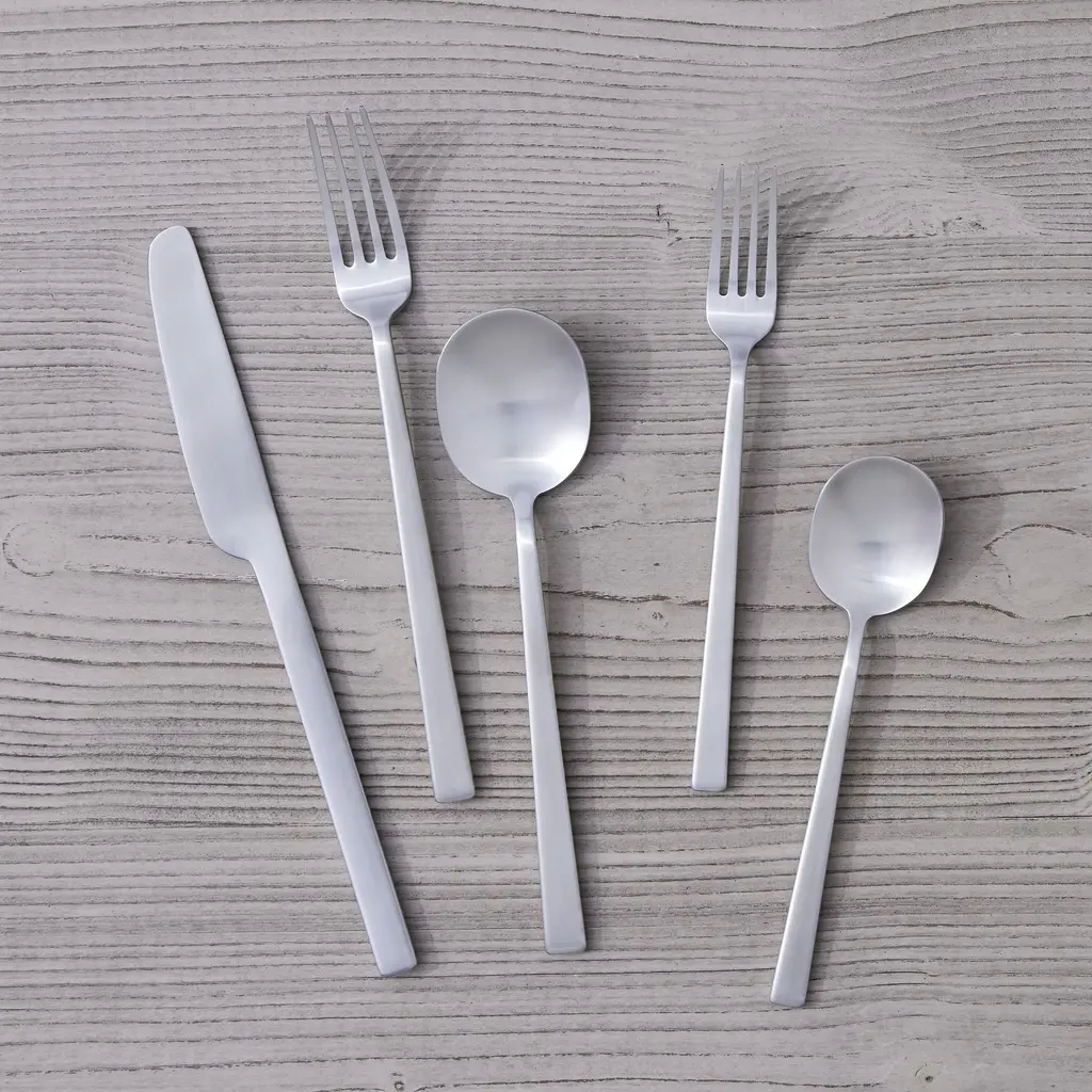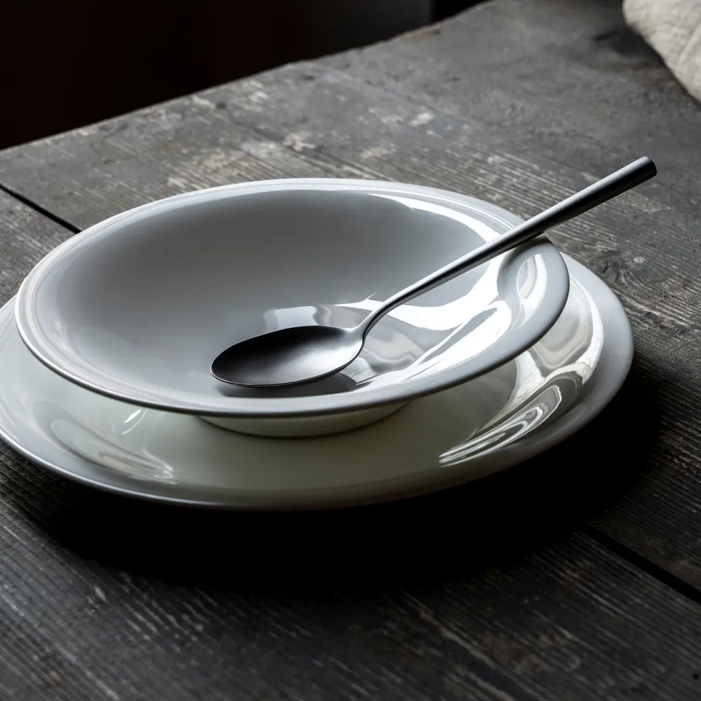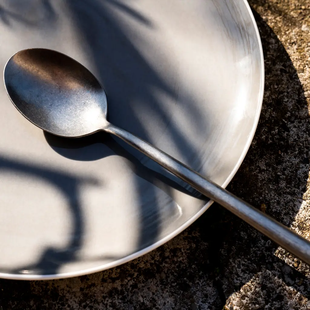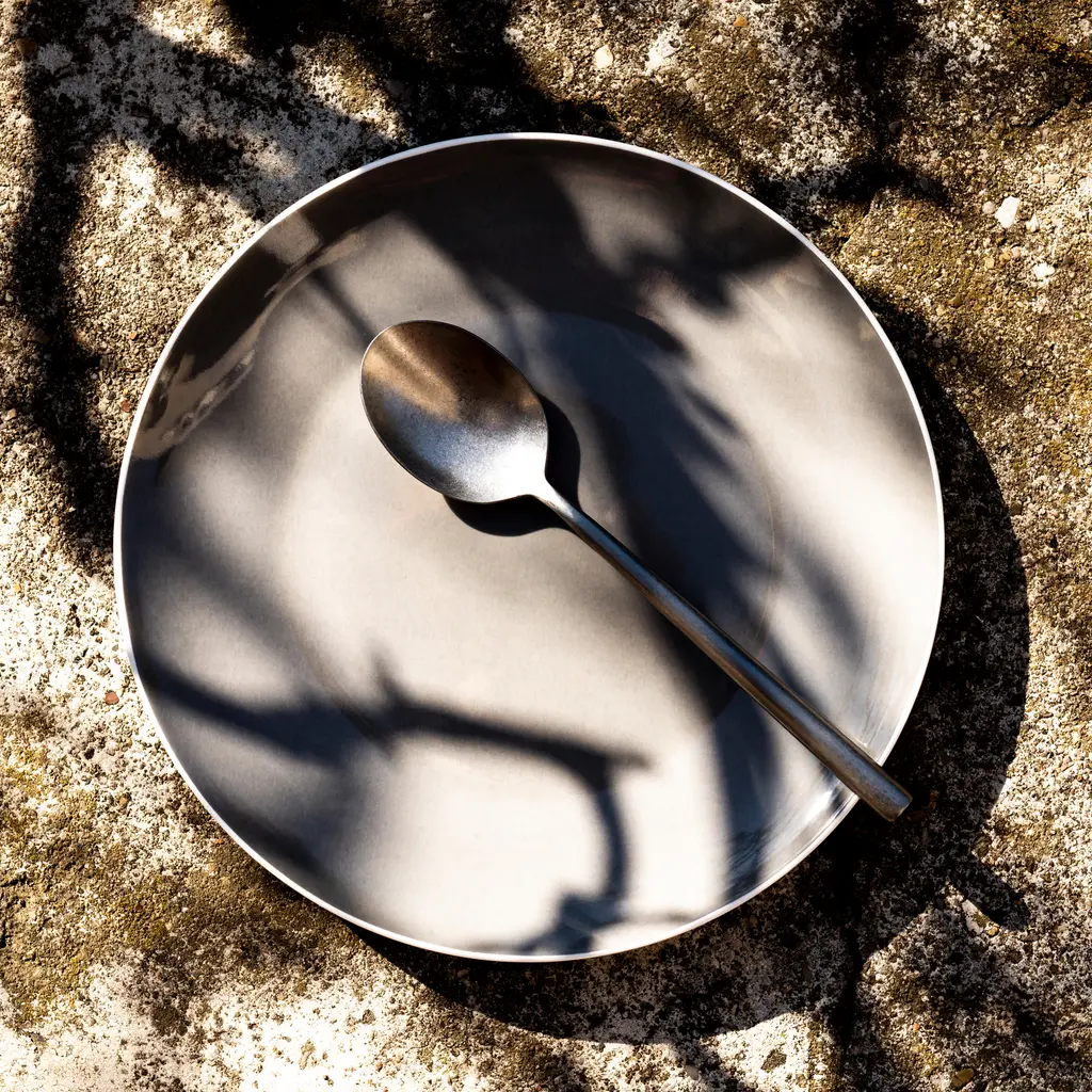 A contemporary revival with roots in the early 1800s, the ‘800 Cutlery updates an archive pattern with clean proportions and a satisfying, balanced feel. Made in Italy from stainless steel, it brings understated character to everyday dining and more formal settings alike. Finish options include polished steel and two PVD tones—Ice and Champagne—applied through Physical Vapor Deposition for higher surface hardness and excellent resistance to corrosion and wear. The result is a durable set that keeps its look in daily use. The 4-piece service includes dinner knife, fork, spoon, and teaspoon. Dishwasher safe; avoid alkaline detergents with alcohol or perfume, remove and dry at the end of the cycle, and don’t mix steel and silver in the same wash. PVD finishes are rated for cycles up to 60°C.