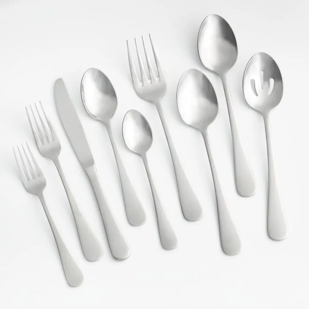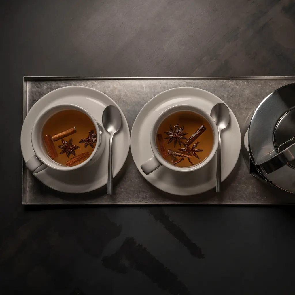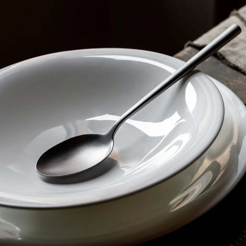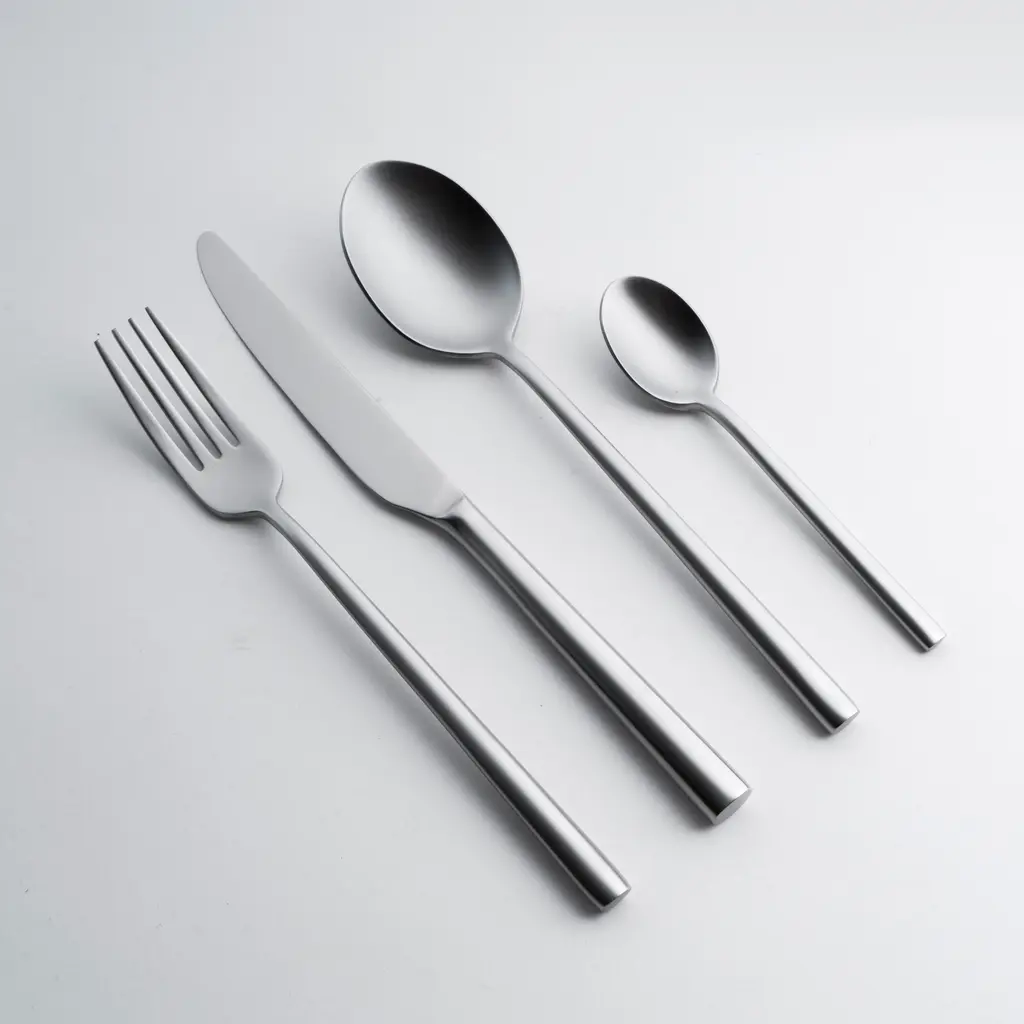 A contemporary revival with roots in the early 1800s, the ‘800 Cutlery updates an archive pattern with clean proportions and a satisfying, balanced feel. Made in Italy from stainless steel, it brings understated character to everyday dining and more formal settings alike. Finish options include polished steel and two PVD tones—Ice and Champagne—applied through Physical Vapor Deposition for higher surface hardness and excellent resistance to corrosion and wear. The result is a durable set that keeps its look in daily use. The 4-piece service includes dinner knife, fork, spoon, and teaspoon. Dishwasher safe; avoid alkaline detergents with alcohol or perfume, remove and dry at the end of the cycle, and don’t mix steel and silver in the same wash. PVD finishes are rated for cycles up to 60°C.