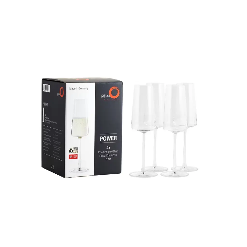8Oz 4Pk Crystal Power Champagne Flute Glasses - Stolzle Lausitz