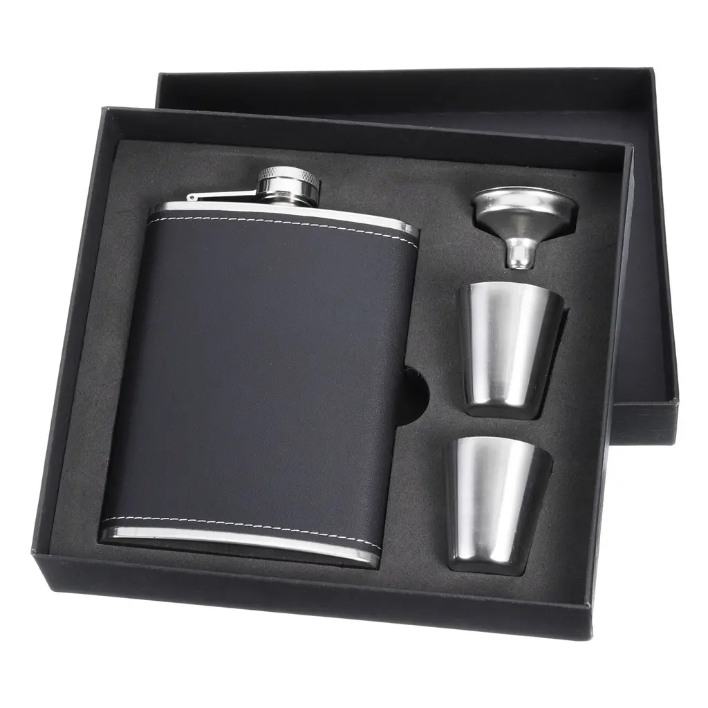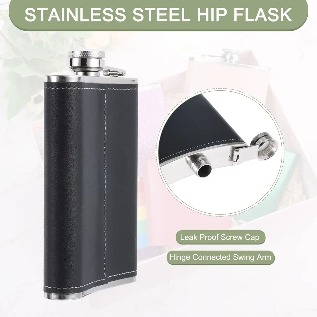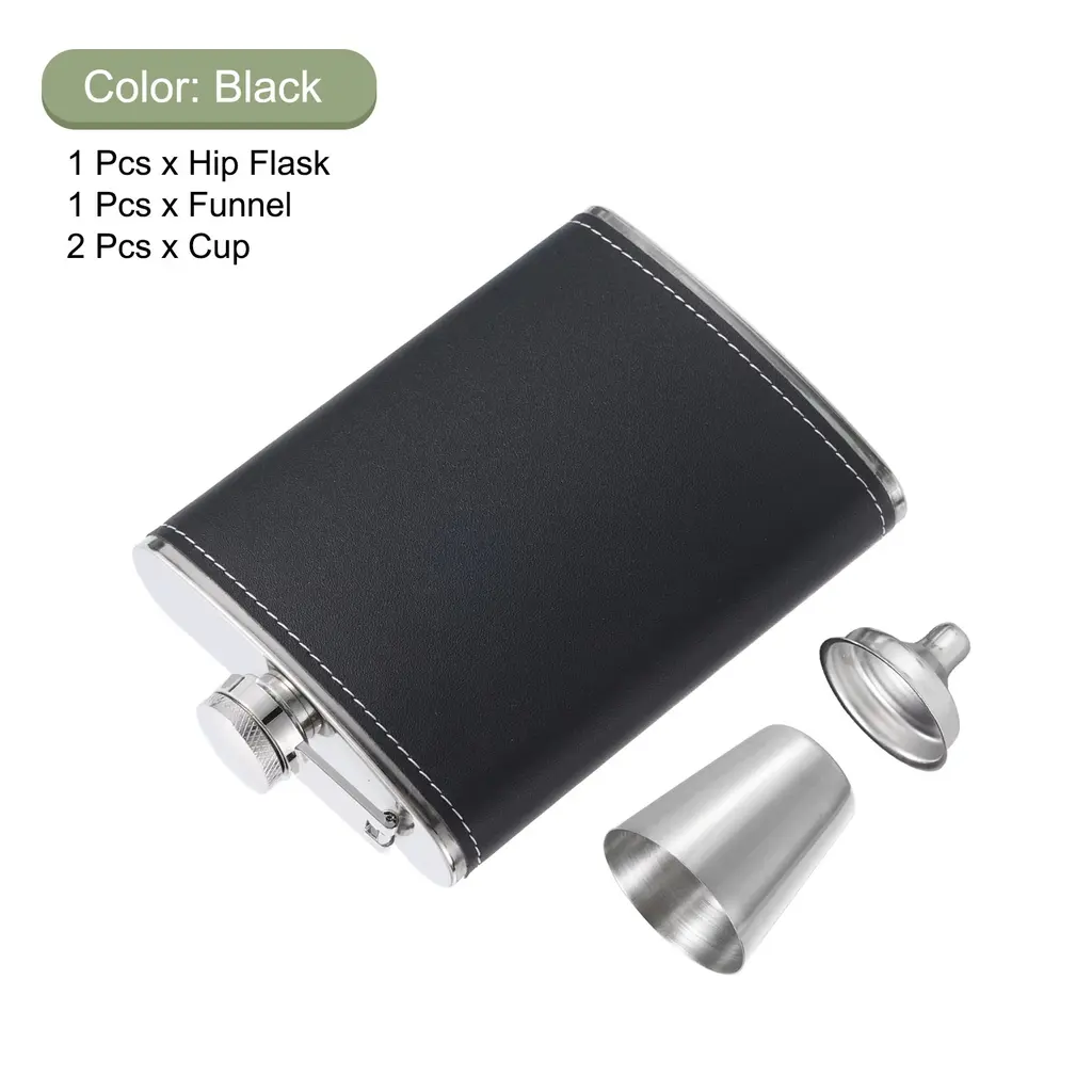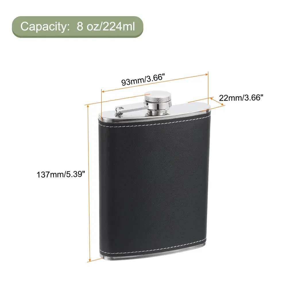 Description:Material - The hip flask is constructed from stainless steel material, with a plating surface finish for corrosion resistance, wear resistance, sturdy construction, not easy to rust and deform, and has long-lasting durability.Leak Proof - The cap of our hip flask is sealed tightly to ensure that wine or beverages will not leak out and be wasted. Furthermore, the cap features a hinged design which is connected to the flask, ensuring that they are not misplaced and lost.Easy to Carry - The shape of the flask is flat and rectangular, portable to carry out, allowing it to easily fit into pockets, bags, or hidden compartments. Store it anywhere, drink anytime and anywhere. Besides, our hip flask set comes with a storage box for convenience and easily fits into backpacks for outdoor activity and sharing drinks with your friend.Multifunctional Application - The portable hip flask can be brought while camping, fishing, picnic, boating, hiking and other outdoor or indoor activities to carry and store a small amount of liquor or other beverages.Warm Tips for First Use & Conservation - 1. Please rinse the flask inside with soap water and clean it up for the first time. 2. After using, please keep the flask always empty, clean and dry thoroughly when not used. 3. Better not to keep liquid in it for a long time.Specification:Material: Stainless SteelFinish: PlatingColor: Matte BlackCapacity: 8 ozOverall Size: 137 x 93 x 22mm/5.39" x 3.66" x 0.87"(L*W*T)Package Content:1pcs x Hip Flask2pcs x Cup1pcs x Funnel