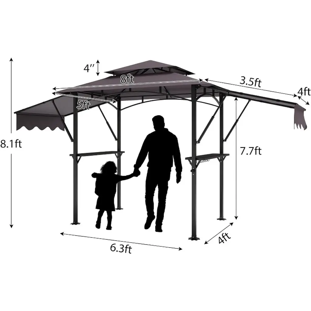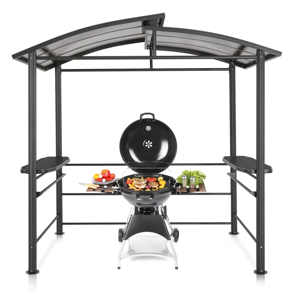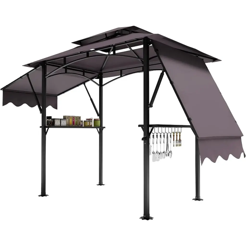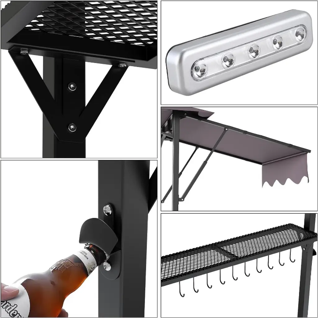 8X5ft Grill Gazebo Canopy W/led Lights, 2 Shade Panels, Bottle Opener & Hooks – Bbq Shelter For Backyard, Patio, Garden